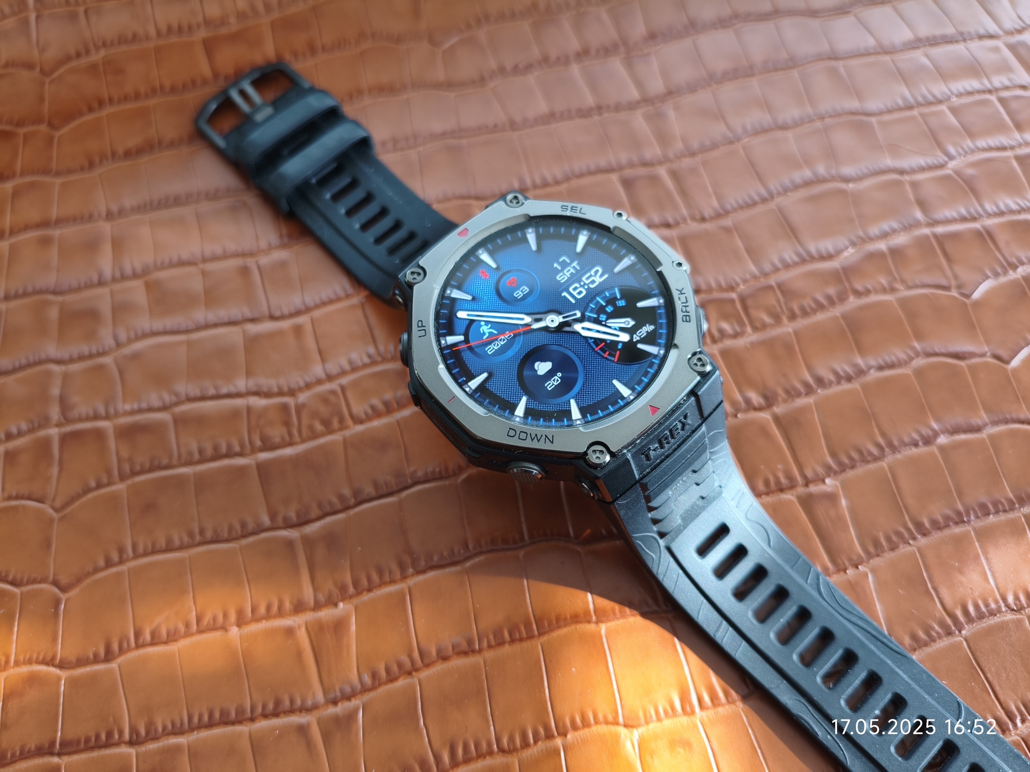 Сейчас ношу такие, это T-Rex 3, смарт часы от Amazfit, хорошие часы, но их постоянные уведомления что я толстый и не спортивный, меня раздражают, и ещё приложение в телефоне тоже дразнится, сука. Поэтому я их подарил Саше, ему 60 лет, он толстый и некрасивый, напарник по шлагбауму, мы работаем в сфере безопасности , охранники короче, спим за деньги.