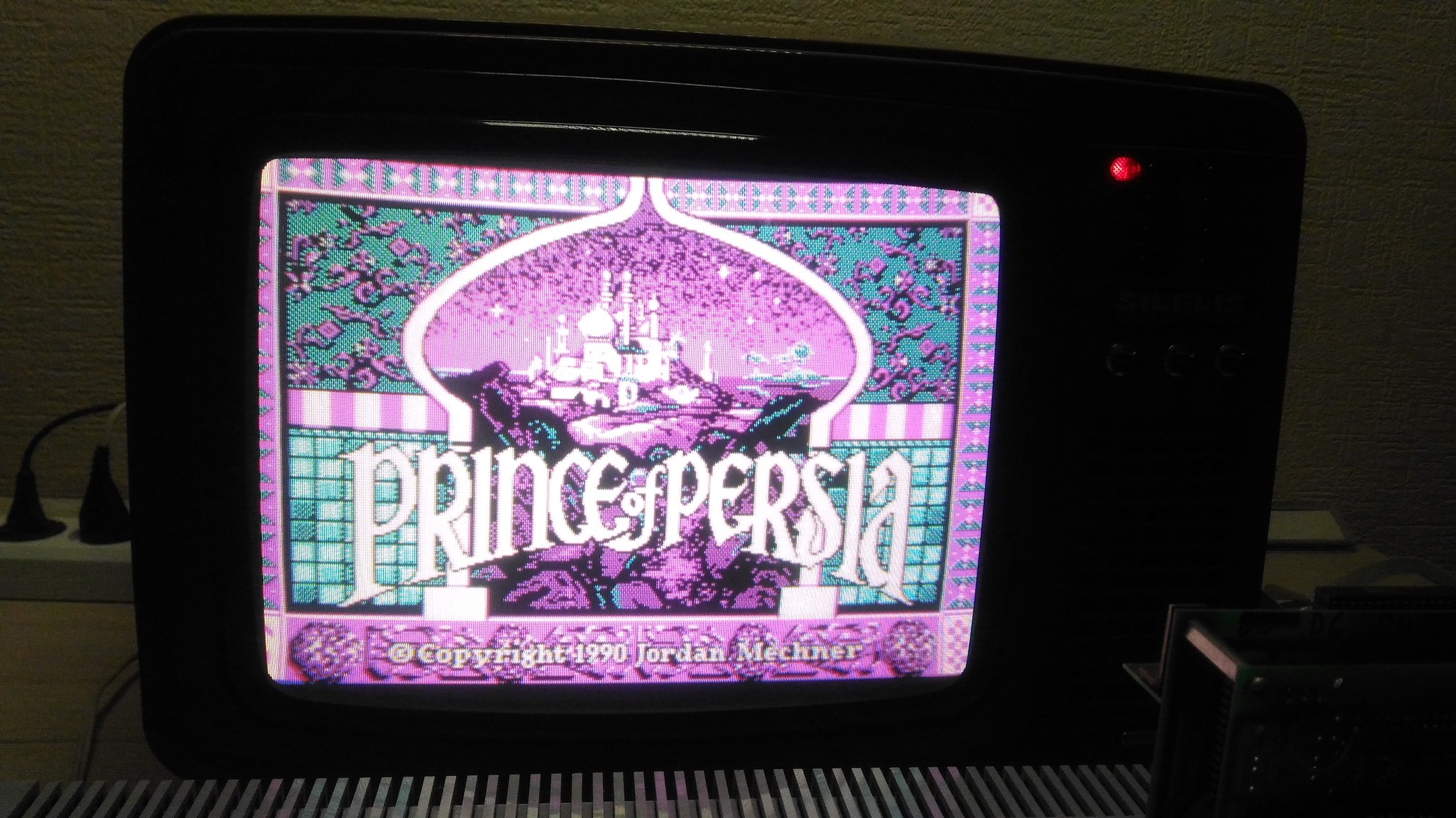 Можно запустить программу SETKA, она нарисует настроечную таблицу, по которой удобно настраивать монитор. И дополнительно сообщит, что видео у нас системы CGA (Color Graphics Adapter). А это значит, что не все игрушки пойдут (многие требуют минимум EGA или даже VGA). Но и тех, что пойдут тоже достаточно, например незабвенный Принц Персии в чудовищной CGA палитре.