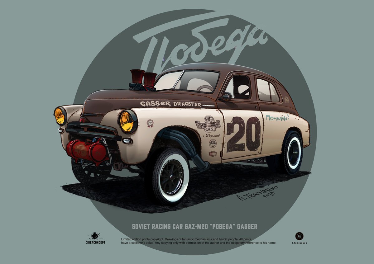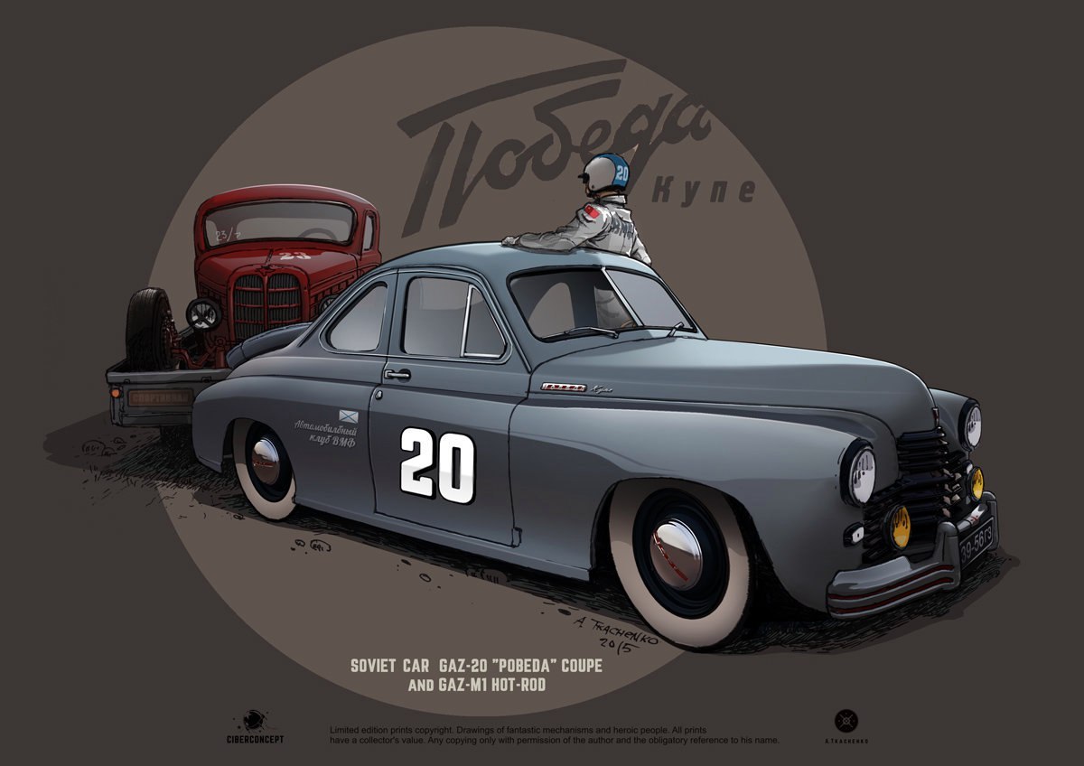 В комментах у меня поинтересовались что за картинка. Решил запилить пост. Работы принадлежат Андрею Ткаченко. Часть работ уже была на Пикабу, но не в едином посте. Всё взято отсюда: http://www.avtohrom.com/sovetskie-avtomobili-glazami-khudozh...