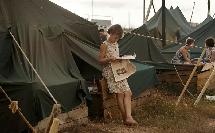 Студентка в палаточном городке.