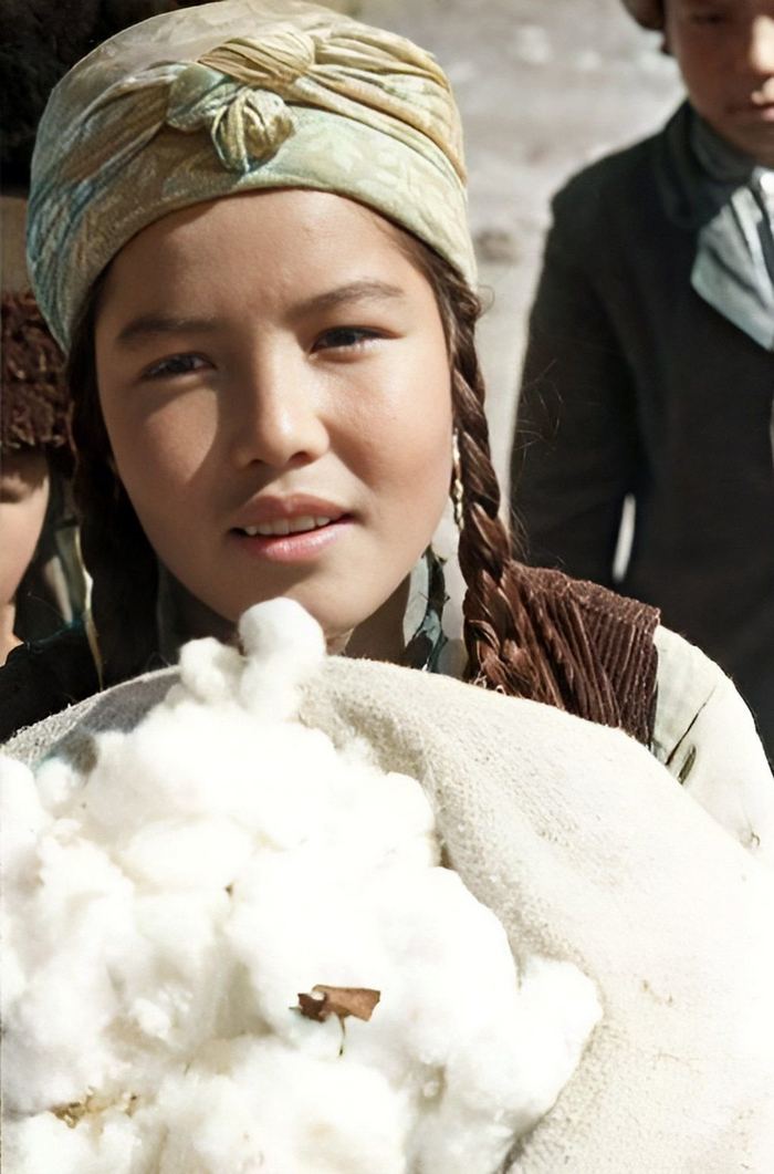Девушка на уборке хлопка.