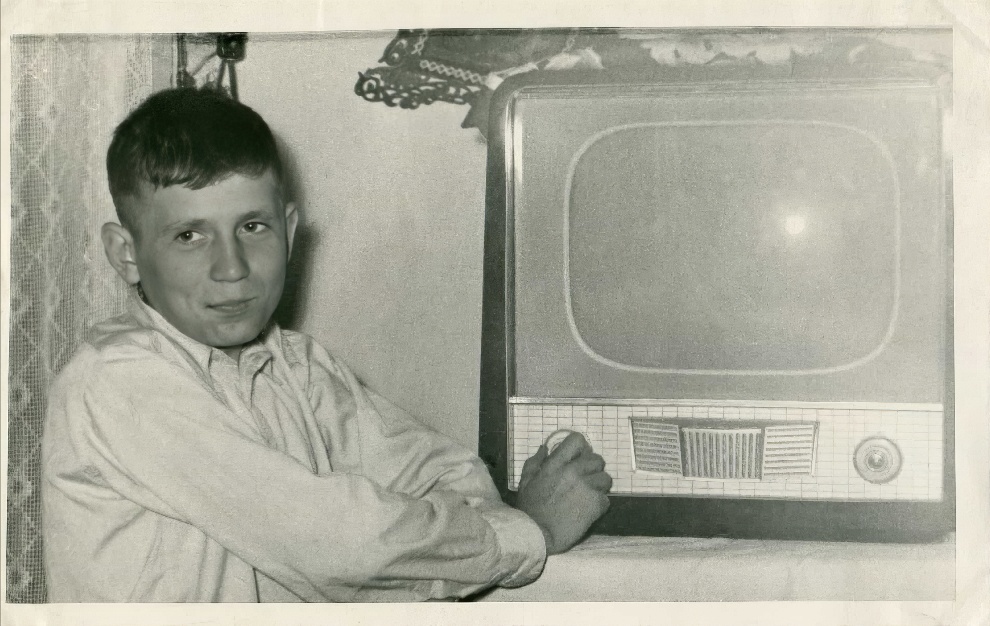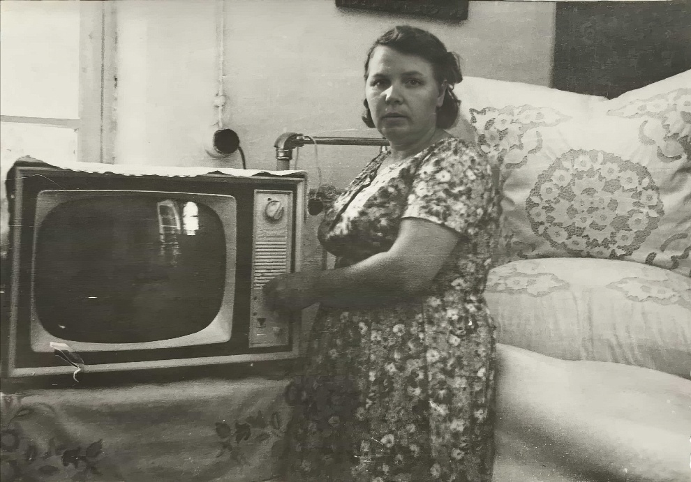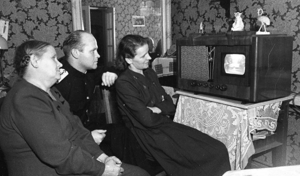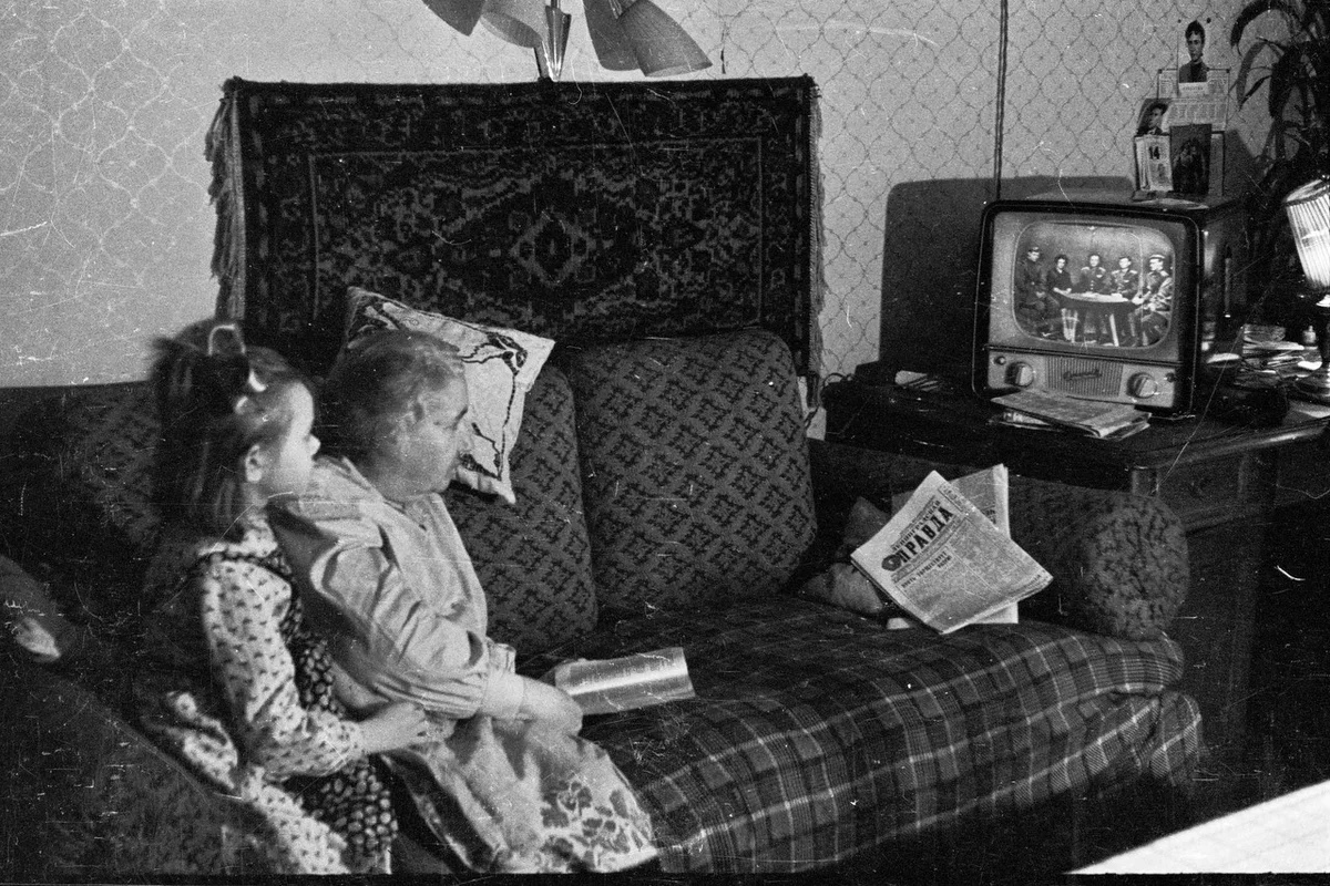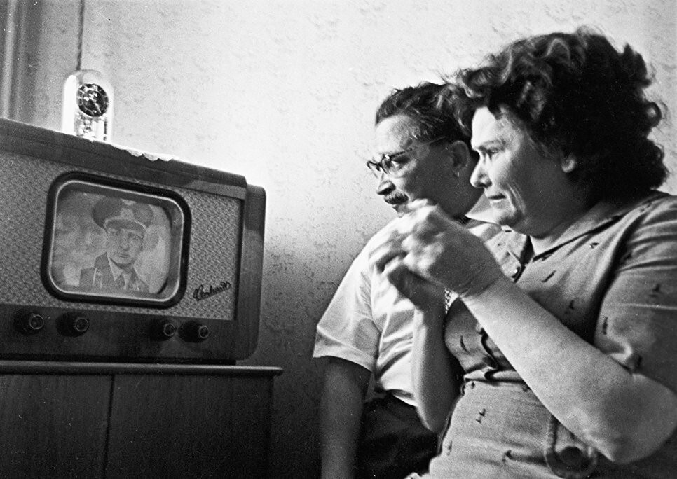 Родители летчика-космонавта СССР Валерия Федоровича Быковского, Федор Федорович и Клавдия Ивановна, смотрят репортаж о полете своего сына, командира корабля Восток-5 (с 14 по 19 июня 1963 года).