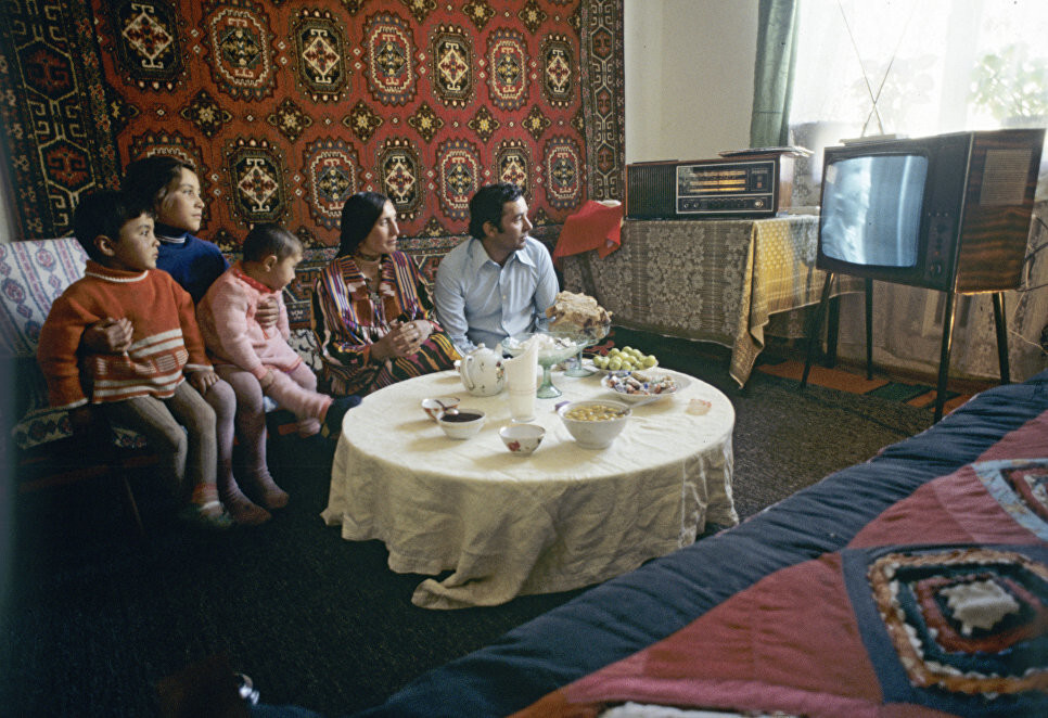 Школьный учитель Акдодхон Мурадалиев с семьей. Таджикская ССР. Горно-Бадахшанская автономная область. Районный центр Ишкашим.