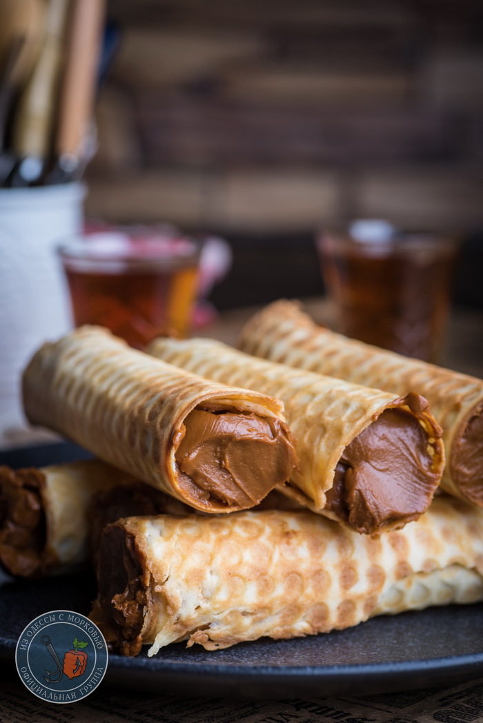 Кстати о вафлях. Не знаю, как у вас, но у меня в детстве эта штука, наравне с пирожными «корзинка» и «картошка», «грибочками и «орешками» отчего то была любимым видом сладкого. Горячие и ароматные трубочки, с вареной сгущенкой, посыпанные с торцов колотыми орехами- в то время мне казались чуть ли не вершиной кондитерской магии. Потом любовь к трубочками несколько охладела, а после нескольких разочаровывающих проб трубочек со сгущенкой на пляже и вовсе прекратилась. И вот сейчас ,когда те самые трубочки со сгухой я не ел лет 20, мне вновь захотелось вернуться в детство, когда мама жарит вафли в свой выходной, все живы и здоровы и в школу идти не надо.