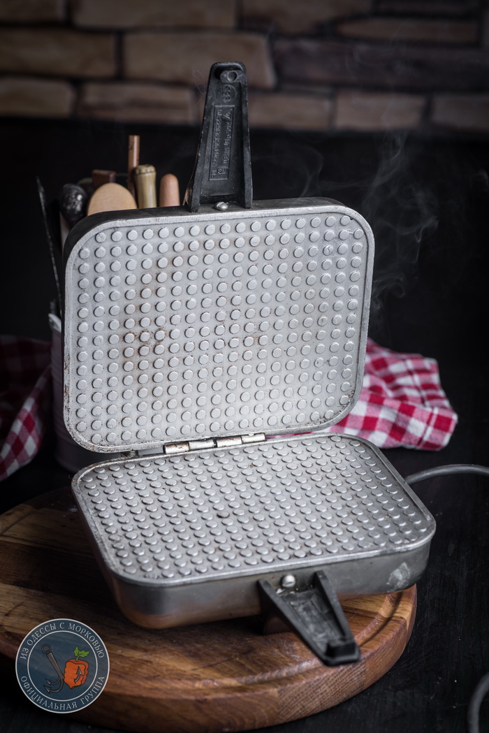Здравствуй, честной народ. Этим внеплановым коротким постом я хочу открыть небольшую рубрику, в которой предлагаю всем нам напомнить о старых кухонных устройствах, хтонических вундервафлях из детства, а также блюдах, с ними связанных. Благо их у меня какое-то количество накопилось. Недавно я опять наводил порядок на балконе и нашел советскую вафельницу, доставшуюся мне от бабушки- в отличном состоянии, надежную, как лом и позитивную, как мечты о светлом будущем, 10р50к. Мне только пришлось заменить устаревшую вилку на новый тип.