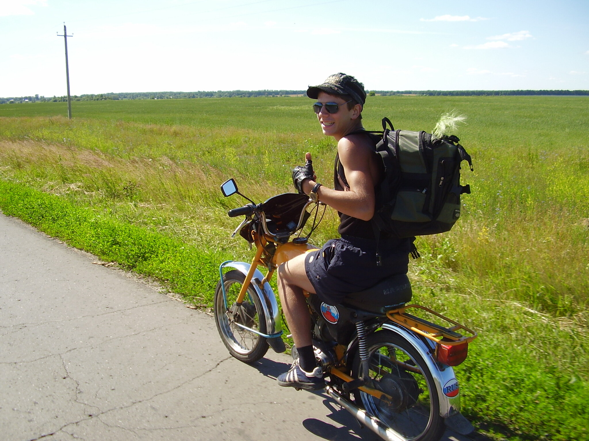 Голубой мопед собрали только на следующий год, и тогда же я его покрасил в оранжевый. До этого на зелёном катались вдвоём или по очереди. Голубой мопед был в очень печальном состоянии. Потому что через несколько лет после покупки его благополучно угнали какие-то цыгане, а когда наши, то состояние его оставляло желать лучшего.