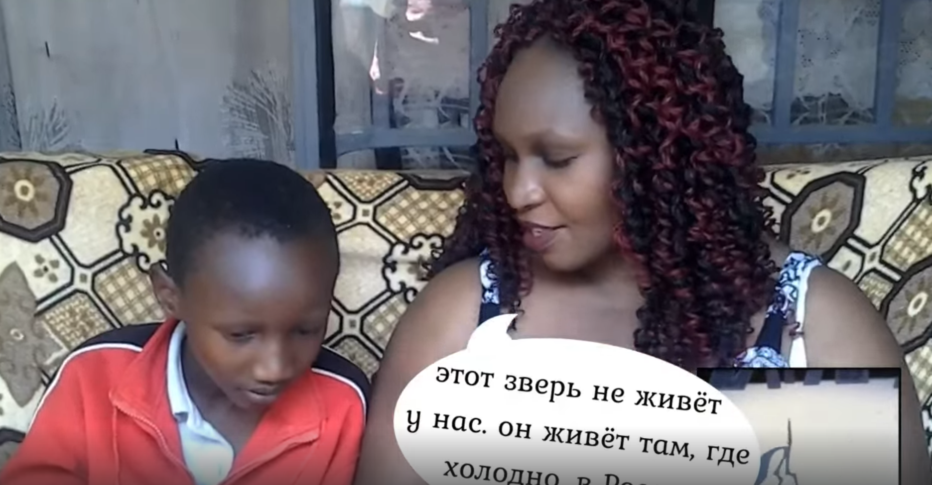 Дети смотрят советский мультфильм "Случилось это зимой"