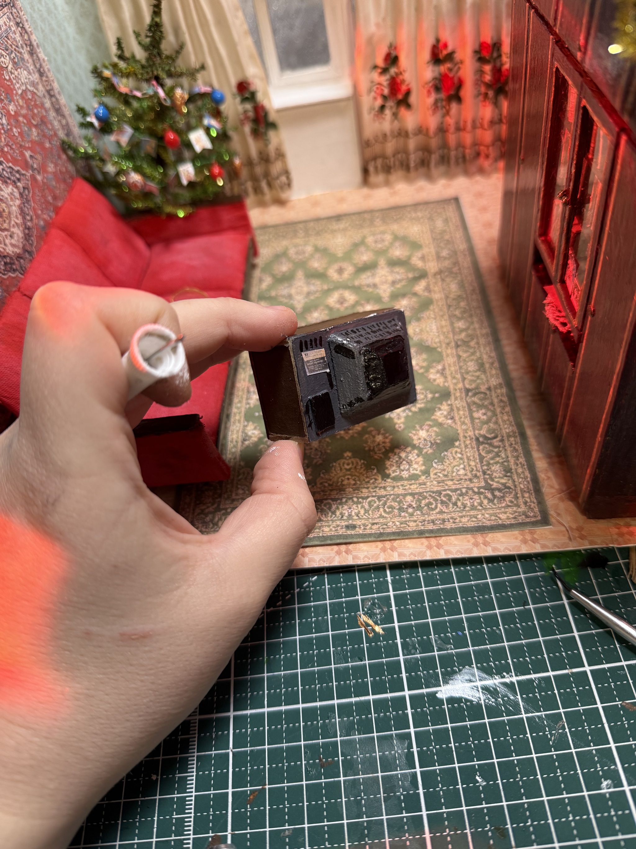 Корпус делала из переплетного картона , экран -эпоксидная смола ). Красила акриловыми красками ) Старалась создать его максимально похожим ,