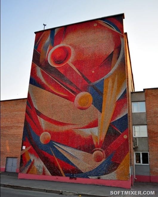 Триптих на фасаде здания у станции метро Каширская, Москва.