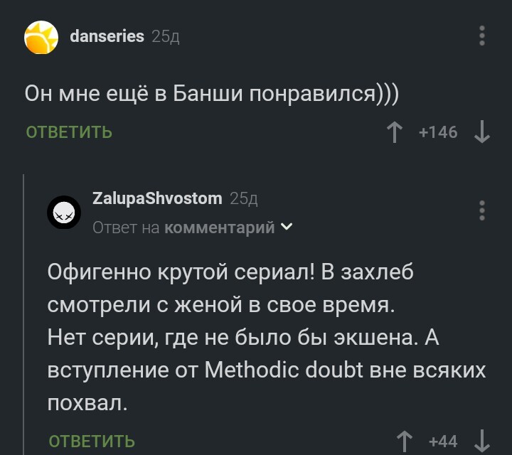 Хочу выразить большую благодарность пользователям @danseries, и @ZalupaShvostom. После ваших комментариев я пошёл качать Банши.