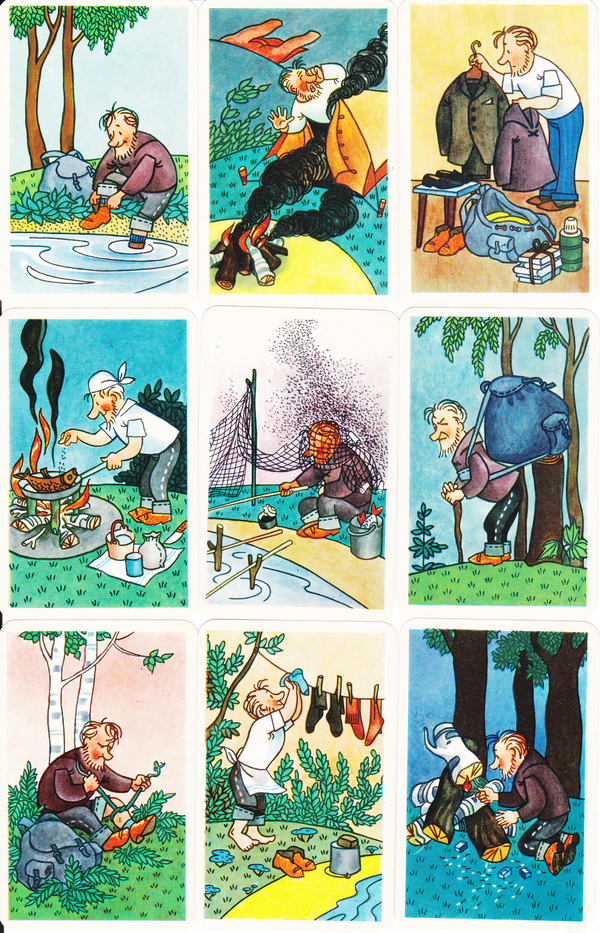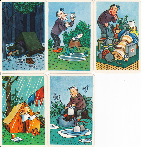 При раскопках в собственном доме был обнаружен интересный набор карточек. Его составители попытались сделать карманный справочник начинающего туриста. На мой взгляд, получилось оригинально, советы актуальны и сегодня. Может быть кому-то ещё будет интересно глянуть.