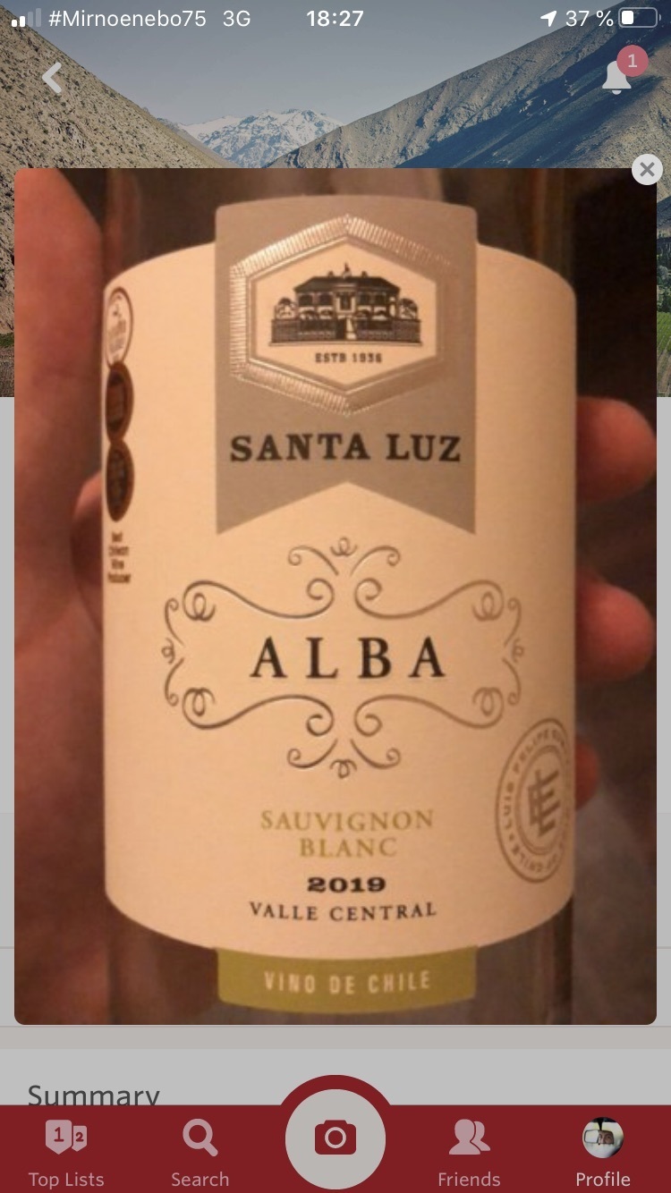 Sauvignon Blanc, Santa Lucia, 2018, Центральная долина, Чили (vivino 3,7/5)