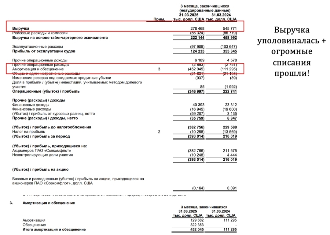 — Списания. Некоторых может напугать операционный убыток в 346 млн долларов, но убыток связан с обесценением судов на 322 млн долларов. По - сути компания отработала квартал в 0!