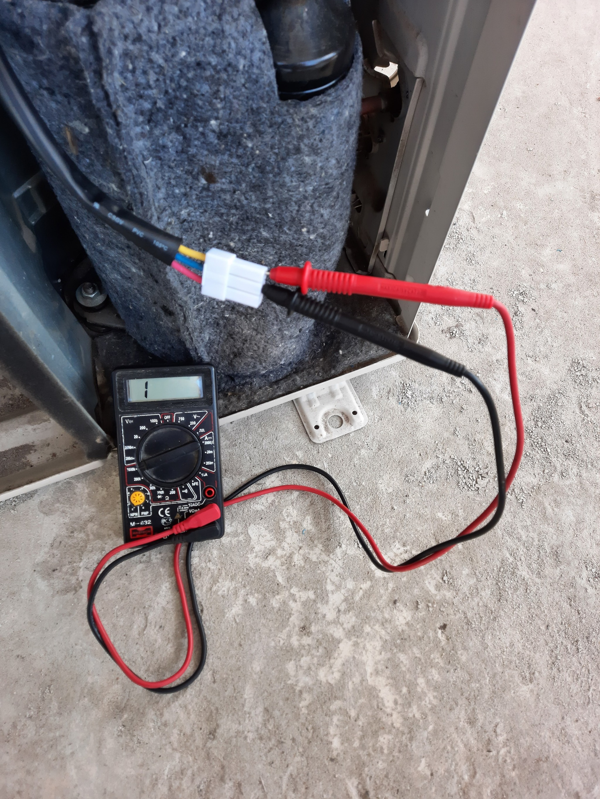 Снял разъем компрессора, на корпус не звонятся, между собой звонится только первый и третий контакт (желтый и красный).