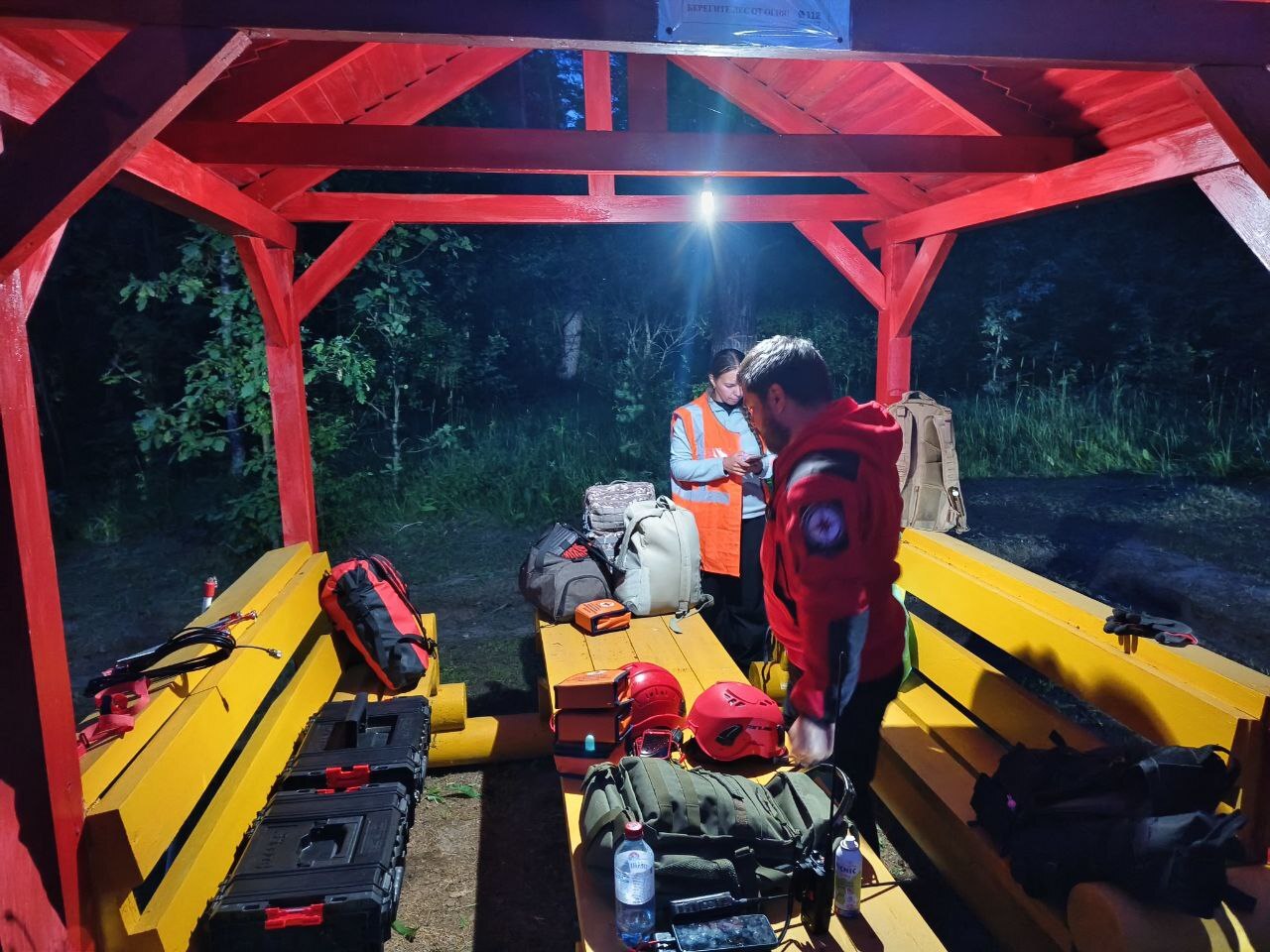 -Третьей частью учений прошла в лесном массиве близ города. С наступлением темноты был разбит штаб, поставлена задача: найти потерявшуюся в лесу женщину. Роль условно потерявшегося человека исполнила одна из участниц спасательного отряда.