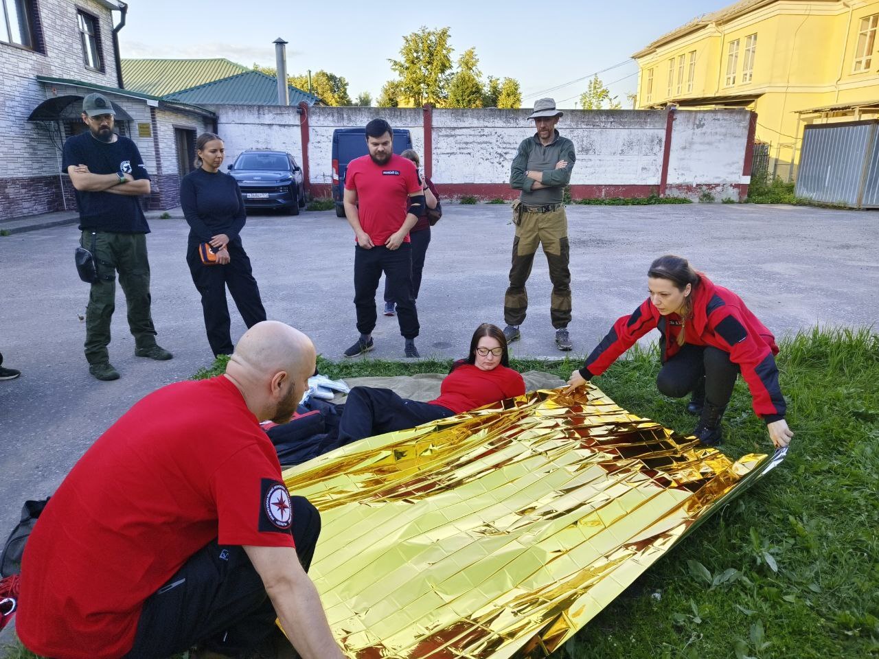 -Практическая часть по изучению приемов первой помощи и эвакуации. Обучение включало в себя отработку задач по перемещению и эвакуации пострадавших, отдельно остановились на основах наузистики, учились вязать морские узлы для разных целей.