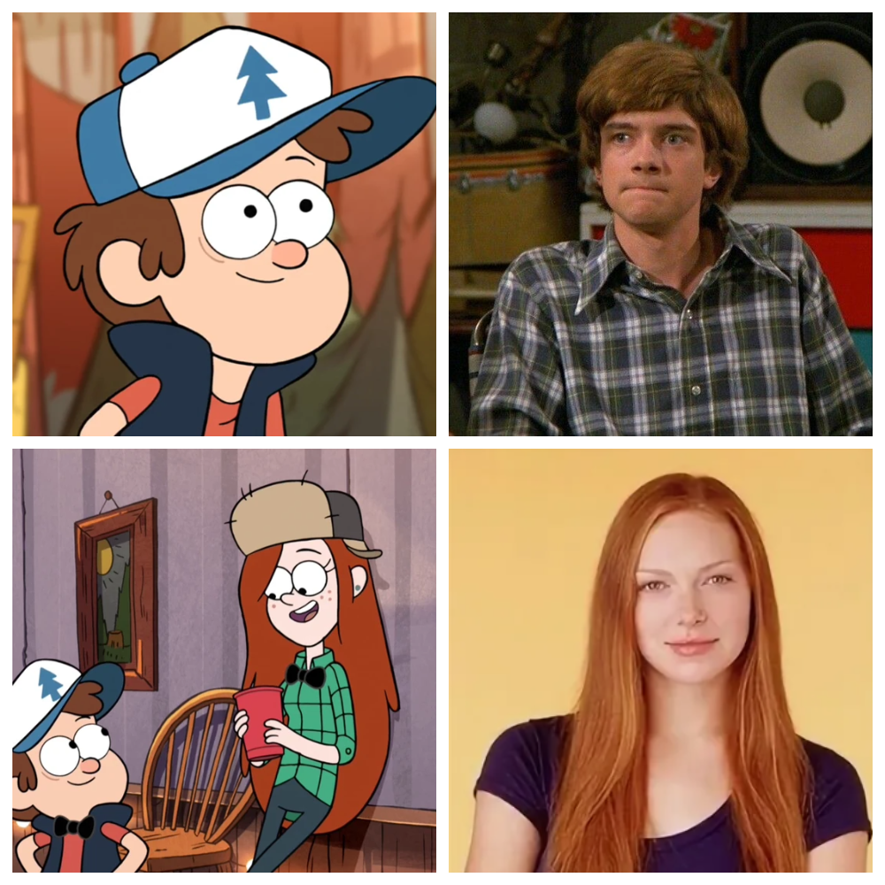 А что если визуальным прототипом Диппера был Эрик (Тофер Грейс) из "Шоу 70-х", а рыжеволосой красавицы Венди - Донна (Лора Препон), в которую Эрик/Диппер был влюблён?