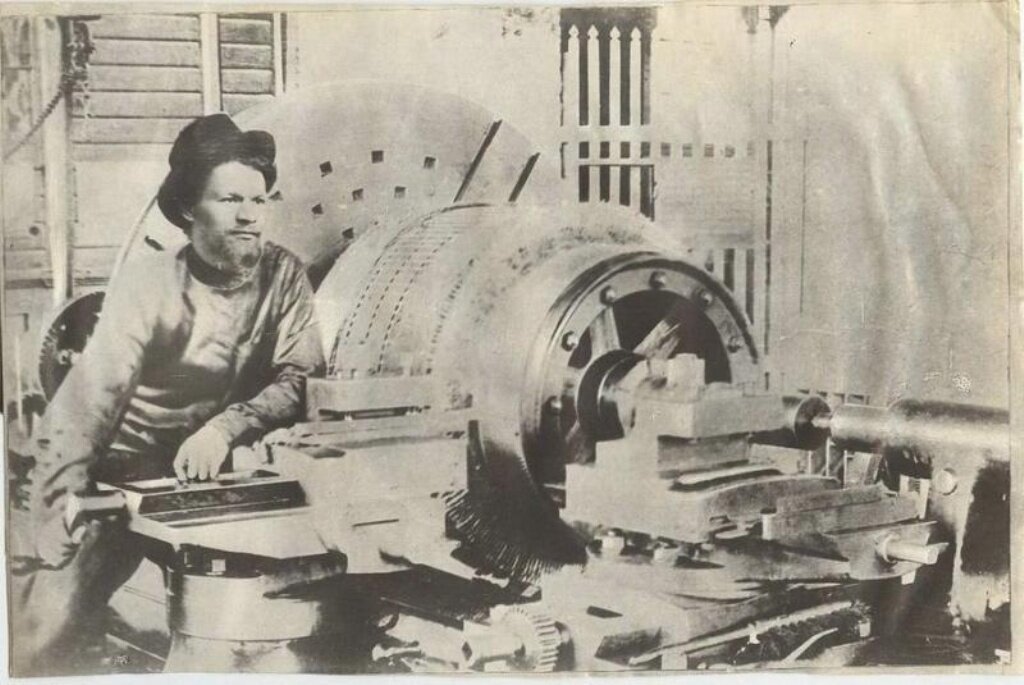 Михаил Калинин за токарным станком, 1903 год
