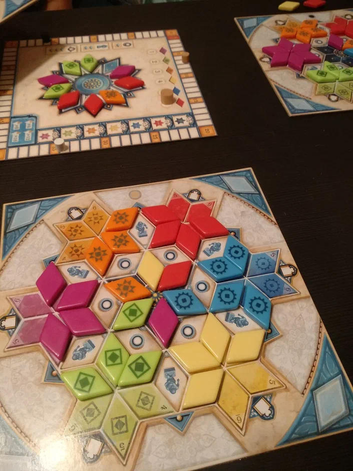 Абстракты - невероятно, но это игра с чисто номинальной темой, которая мало связана с механиками игры. На эту игру можно "натянуть" любой сеттинг и любой дизайн, но это мало чего изменит. Зачастую пересекаются с семейными играми. Среди них - Азул, Саграда, Каскадия, и прочие.