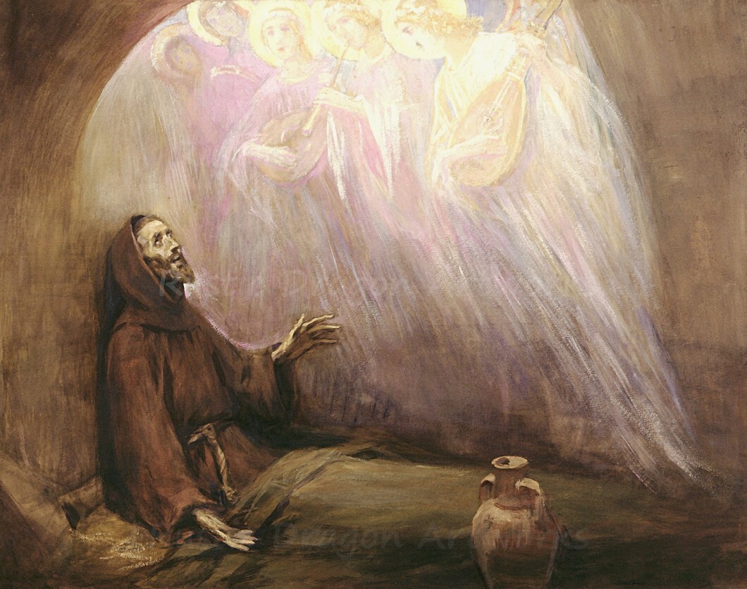 ● Через аскетизм и уход от мира. Пик добрых дел, как неотъемлемой части пути к вечной жизни, ознаменовался внедрением в христианство убеждения, что залогом спасения и обретения бессмертия служит аскетизм и отшельничество. Эта концепция, во-первых, дала начало монашеству, которое на западе со временем приобрело зловещие черты — в образе иезуитов, инквизиторов-доминиканцев и воинствующих тевтонцев. Во-вторых, она воплотилась в уничижении тела через посты и самобичевание, что в средние века демонстрировалось публично во время особых религиозных шествий. И в-третьих, в… исихастском учении, расцветшем в Византии XIV века. В тот период некогда великому Второму Риму приходилось переживать тяжёлый упадок. Государство доживало последние десятилетия, и это была уже не полноценная жизнь, а скорее угасание, агония, растянувшаяся на годы из-за ряда обстоятельств, что сделало её ещё более мучительной и пугающей. И вот “В условиях постоянной нужды, войн и раздоров интеллектуальная жизнь Византии всё больше погружалась в мистицизм в одной из самых зрелых его европейских форм — исихастском движении (от греческого ήσυχία — тишина, уединение, отрешение). Корни этого учения и аскетической практики уходят в раннее средневековье, в монашеские общины Египта и Сирии. В начале XIV века монах Георгий Синаит возродил исихастскую традицию на Афоне. Основой практики служила идея погружения в себя и слияния с Богом через внутреннее просветление. Такое состояние достигалось длительной тихой молитвой, повторяемой многократно, в сочетании с особым положением тела, контролем дыхания и кровообращения, что сближало поздний исихастский опыт с йогой” [Дашков С. Б. Императоры Византии. Москва: Красная площадь, 1996. Страница 295]. Видным сторонником исихастского движения стал Григорий Палама (1296–1354), разработавший его теоретическую базу и причисленный православной церковью к лику святых (память 14 ноября). Вот как Православный словарь описывает их веру, согласно которой, как они полагали, “существует вечный, несотворённый божественный свет, который некогда сиял на горе Фавор во время Преображения Господня, а в XIV веке озарил их как награду за отшельническую жизнь. Для поддержания и усиления этого света они проводили дни и ночи в коленопреклонённом положении, опуская голову на грудь и устремляя взгляд в центр живота (в область пупка)” [Полный Православный Богословский Энциклопедический словарь. В 2 томах. Москва: Возрождение, 1992. Том 1. Страница 966]. Именно так жил Григорий Палама, проводя время “в полном одиночестве, тишине и молитве… От бесконечных бдений, постов и сырости пещеры, служившей ему обителью, он заболел, рискуя жизнью, и наставники посоветовали ему сменить место” [Григорий Палама. Триады в защиту священнобезмолвствующих. Москва: Канон, 1995. Страница 347]. Переехав на Афон, он с не меньшей преданностью продолжал эти духовные практики и обосновал их теологически. “Чтобы укрепить живой опыт веры догматически, Палама выдвигает концепцию о вечно сияющих, обильно изливающихся из Божества энергиях (действиях), к которым приближает постоянная молитва и через которые человек может сближаться с Богом, то есть обретать обожение, если только полюбит Бога чистой любовью… евангельским подтверждением этих божественных энергий для святого Григория служит ‘нетва