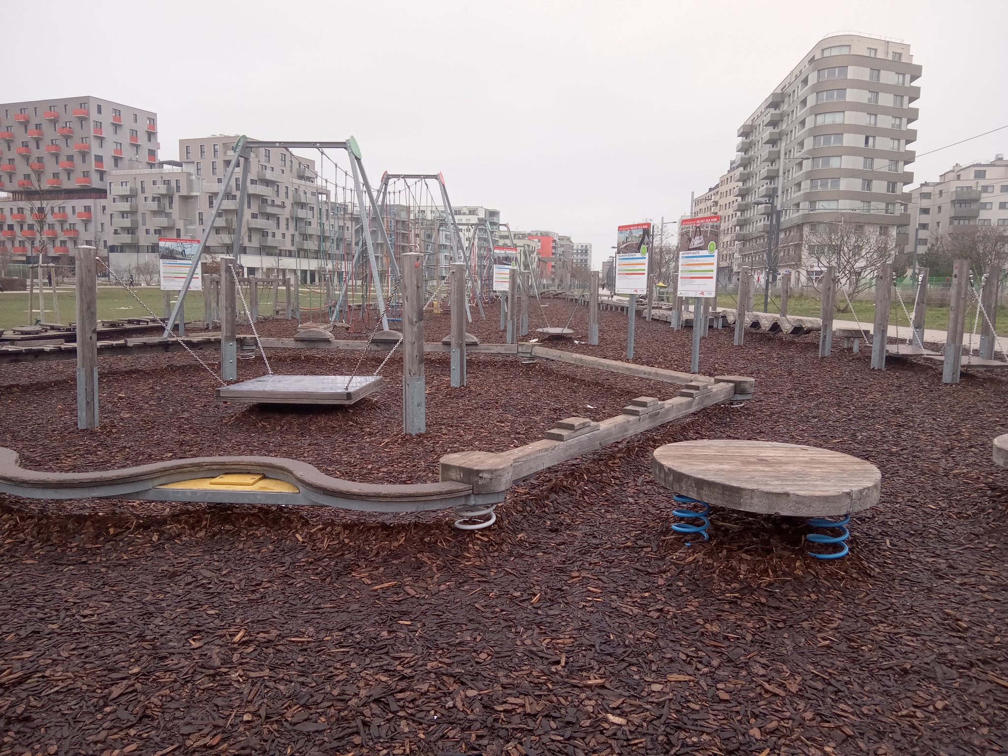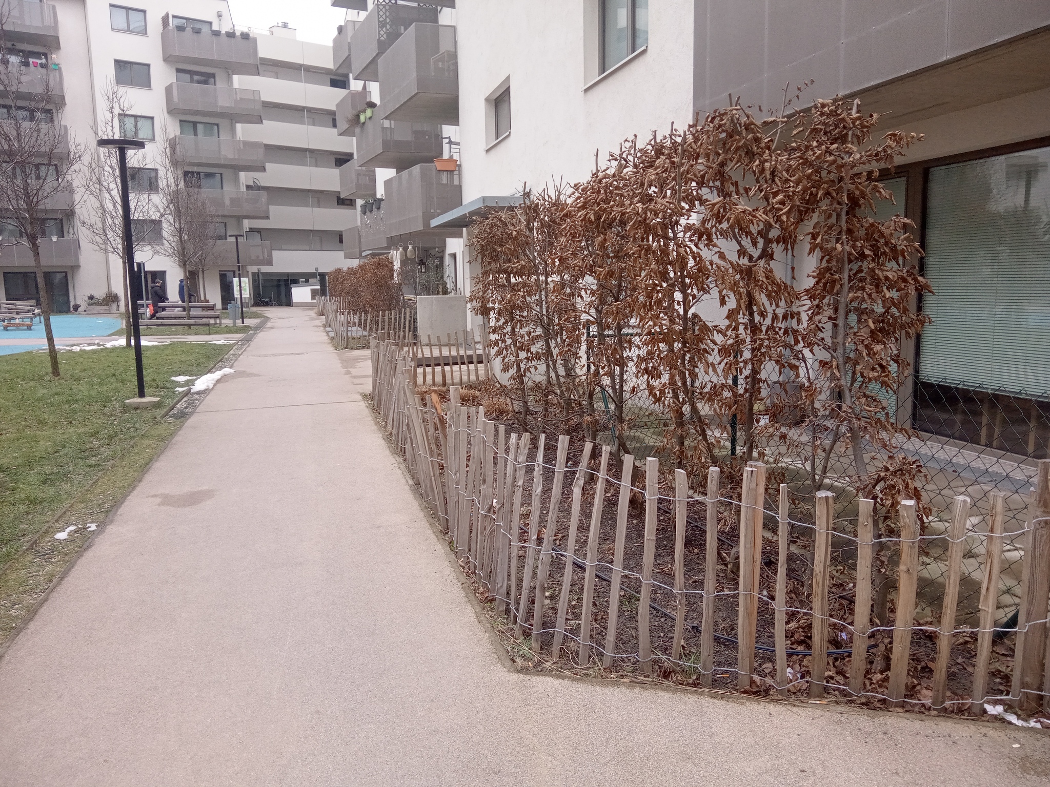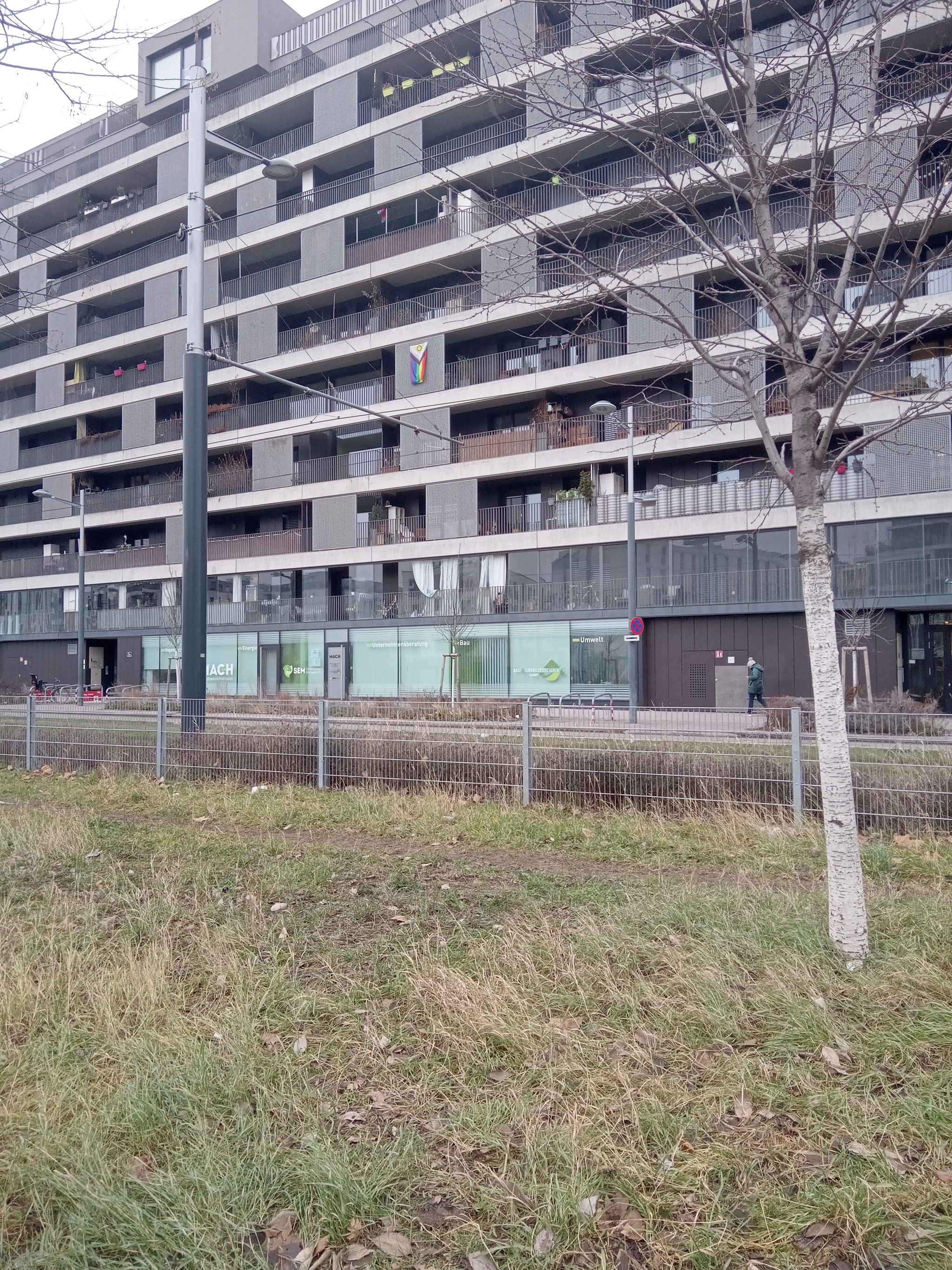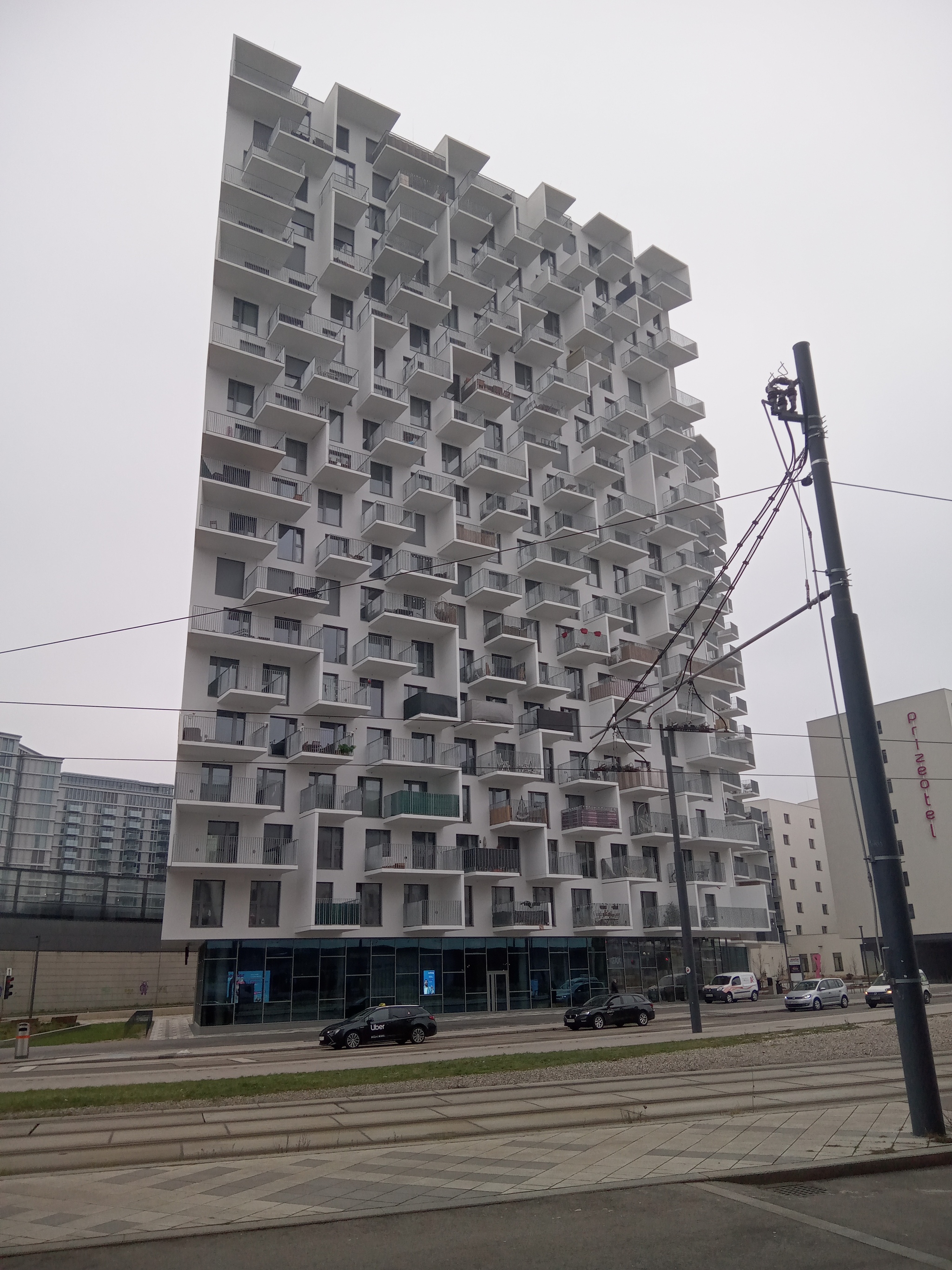 В Вене у меня выдались свободные пару часов, я решила пройтись по жилому району, посмотреть на современное жильё и житьё. Райончик находится сразу же за железнодорожным вокзалом, он относительно новый.