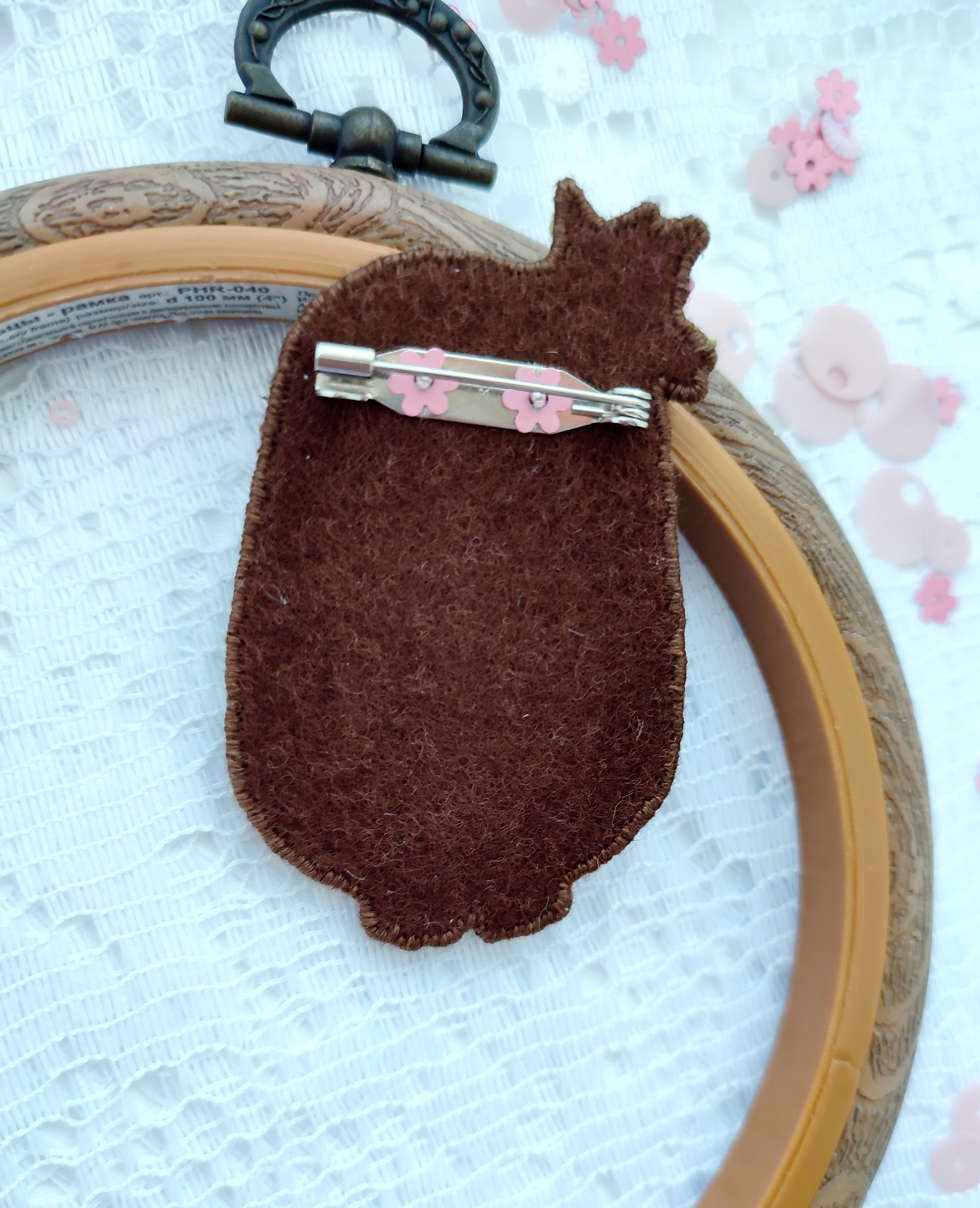 Использовала шерстяное мулине фирмы Риолис, изнанка фетр. Размер броши 6х3,5 см.