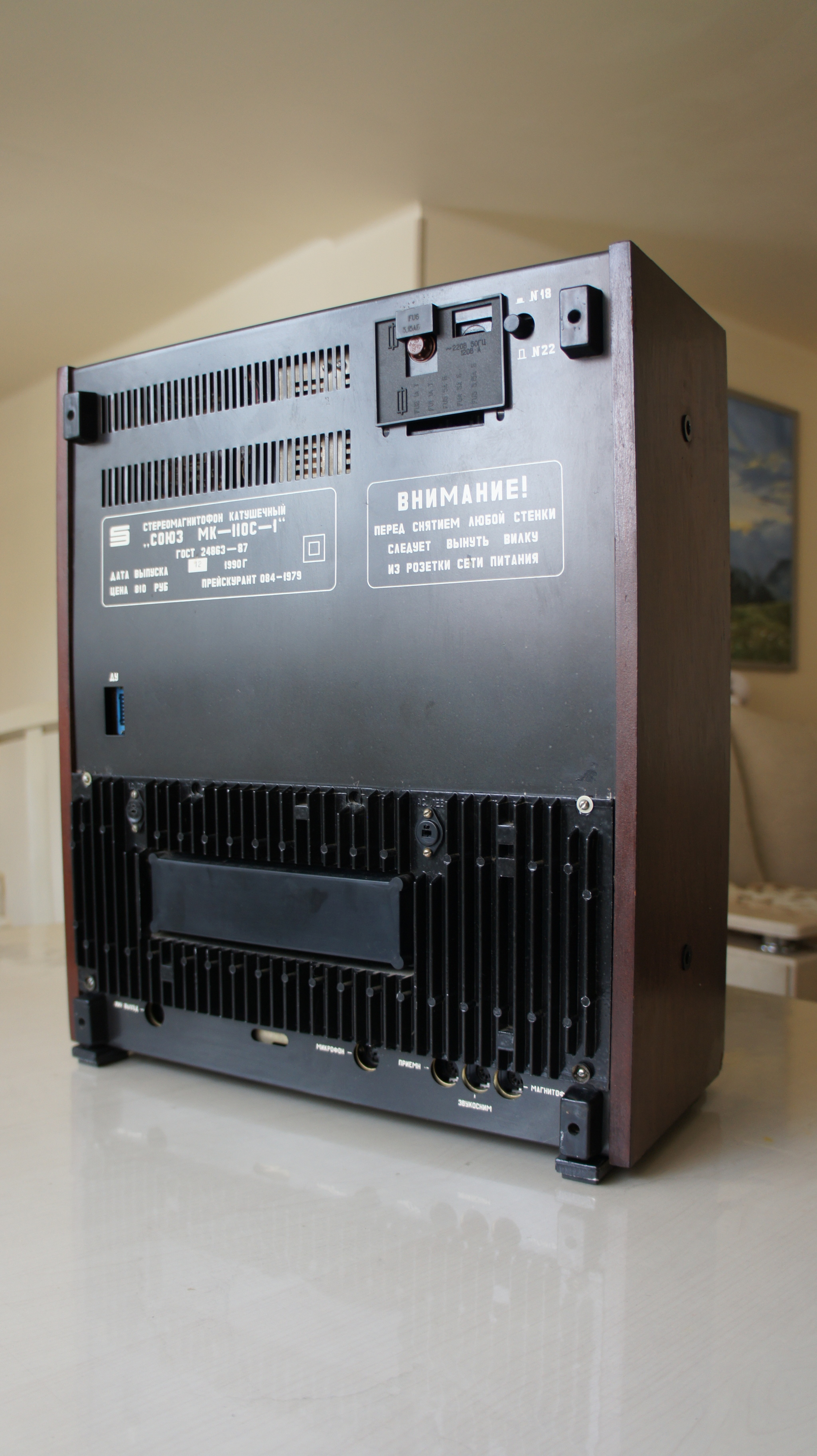 Катушечный магнитофон «Союз 110 С1 стерео», является модификацией версии магнитофона «Союз 110» выпускавшийся в городе Брянск с середины 80х (ориентировочно с 86года), собственно, сама модификация заключается в том, что лицевая панель была разделена для удобства обслуживания на две части. Ранее чтобы добраться до головок и прочих элементов под лицевой панелью, приходилось снимать все ручки и всю панель целиком, для примера вот тот самый первый вариант магнитофона «Союз 110 стерео» с монолитной пластиковой лицевой панелью: