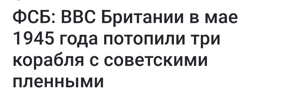 ФСБ опубликовала документы о том, как британские военные 3 мая 1945 года жестоко убили в Любекской бухте в Балтийском море узников нацистских концлагерей, разбомбив и расстреляв три германских судна: "Кап Аркона", "Тильбек" и "Дойчланд", на которых немцы перевозили заключенных в Норвегию. Все корабли затонули. Пытавшихся уцелеть британцы расстреливали с катеров. По разным подсчетам, тогда погибло от 7 тысяч до 12 тысяч человек. Подавляющее большинство погибших составляли советские военнопленные. Спаслись лишь 300 человек.