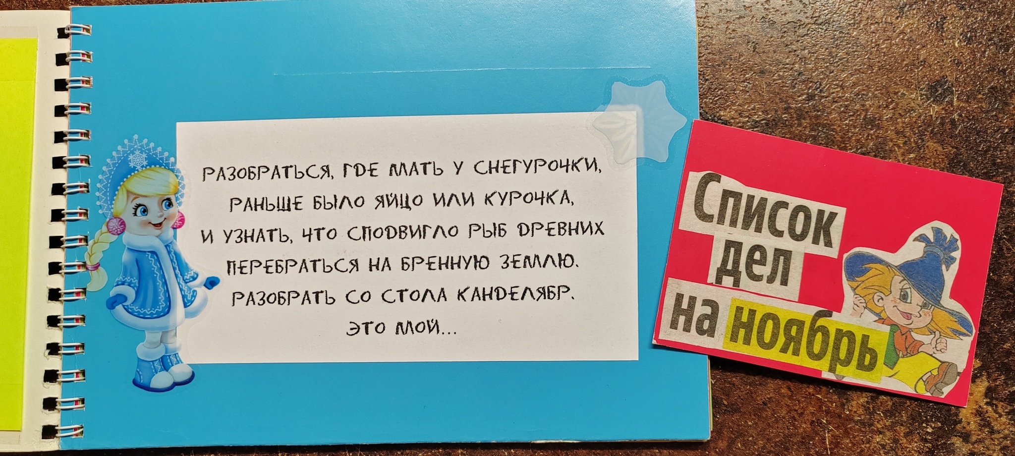 - яркое цветное оформление: из той же оперы, серость у малышей не в почете. Тем более нет у меня цветного принтера, подойдут заголовки и иллюстрации, вырезанные из газет;