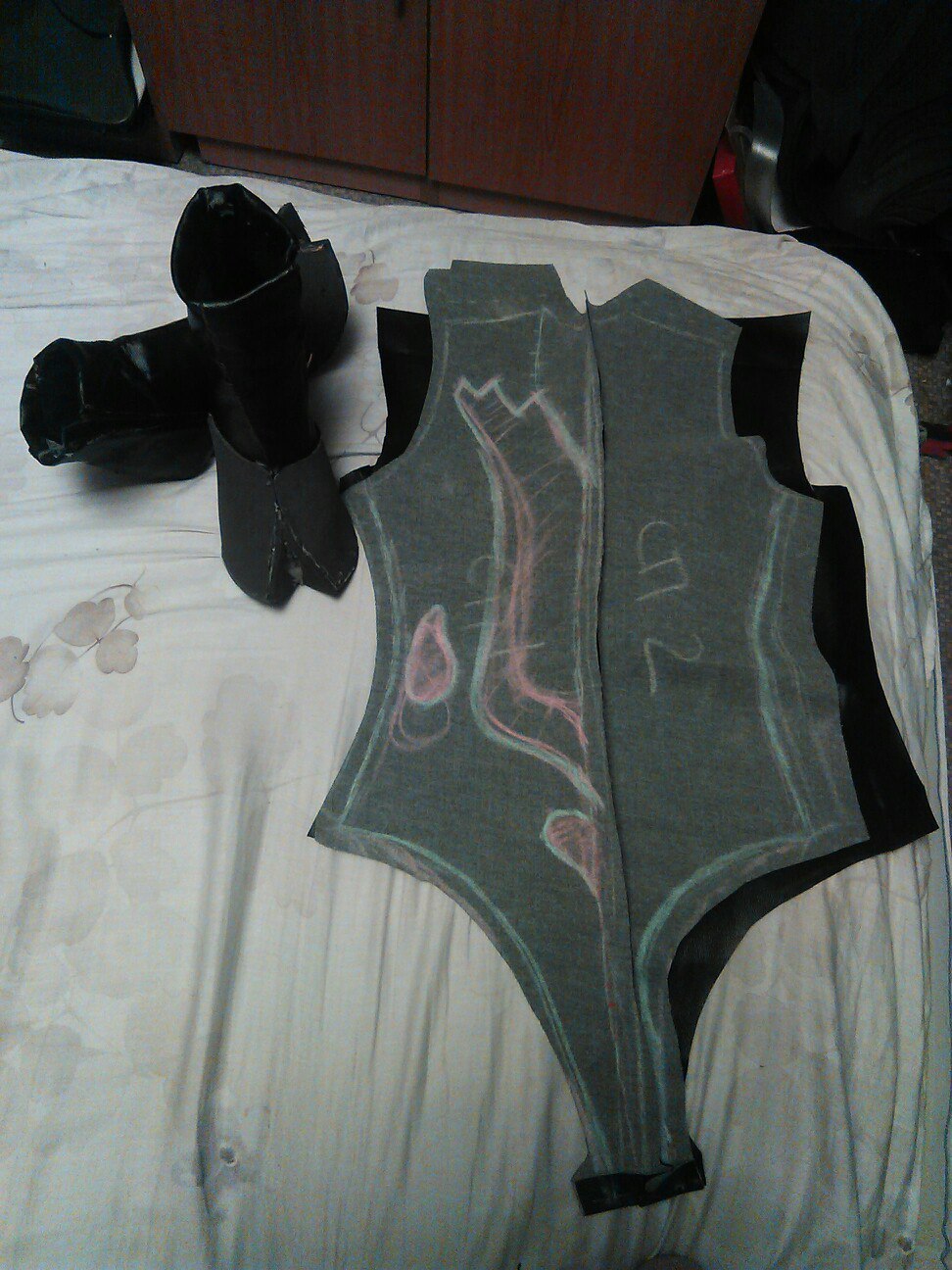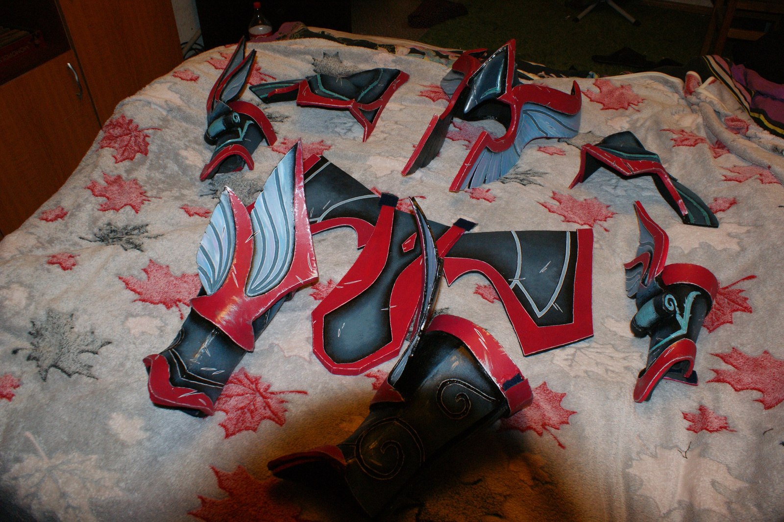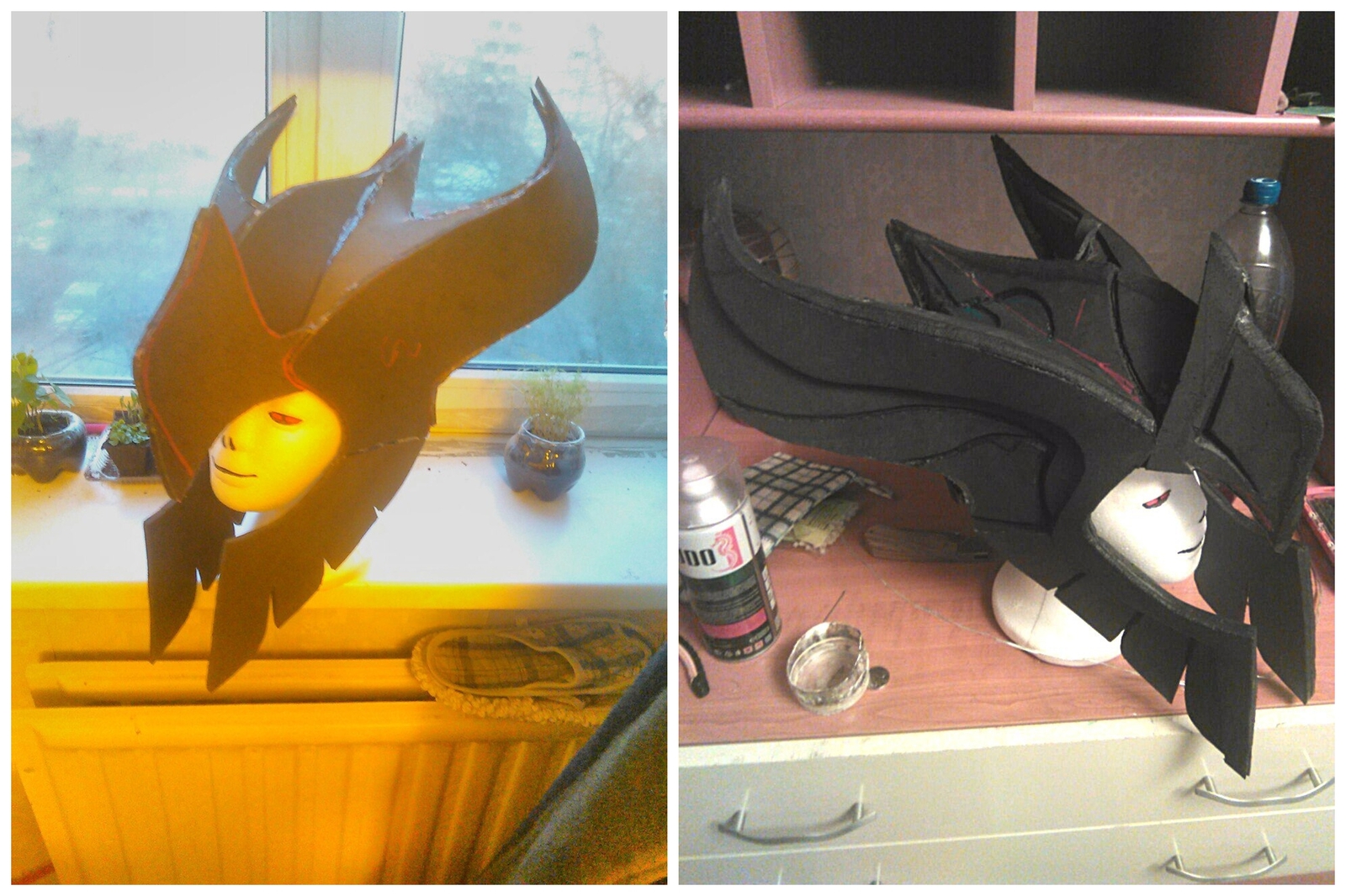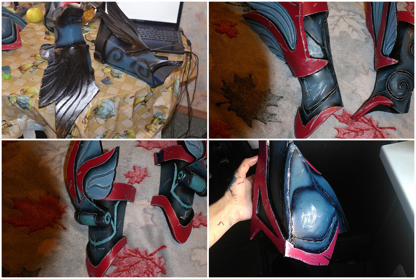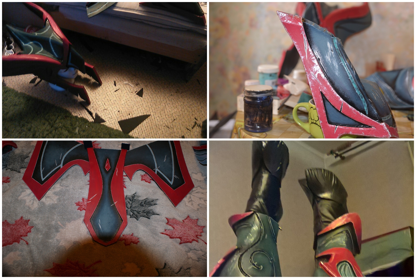 После долгий процесс выкраивания всего доспеха из евы, его грунтовка перед покрасом.