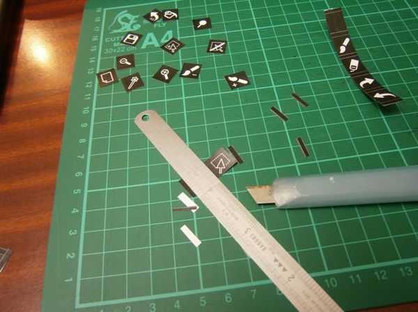 Вырезаем клеим.Я напечатал на самоклейке и без проблем предварительно обезжирив поверхность прилепил иконки инструментов к кнопкам мощной программируемой клавиатуры:)