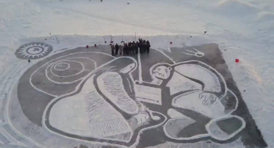 Рисунок якутского художника А.П. Мунхалова "Слушают мир" воссоздали на льду в Чурапчинском улусе Якутии.