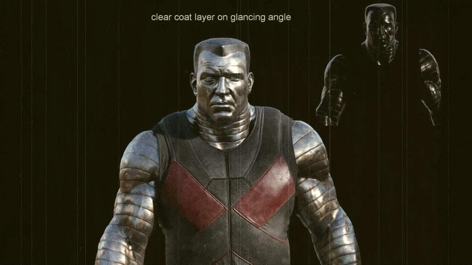 Если создание лица было достаточно простым испытанием, то металлическое покрытие Колосса потребовало решения ряда новых технических задач. Во-первых финальное хромированное покрытие не должно было выглядеть слишком хромированным, для чего Ротбарт обращался к специфическим референсам.