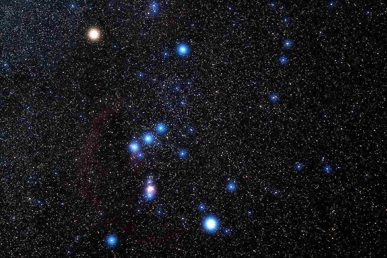 Созвездие Ориона: Ригель (снизу) и Бетельгейзе (сверху слева)