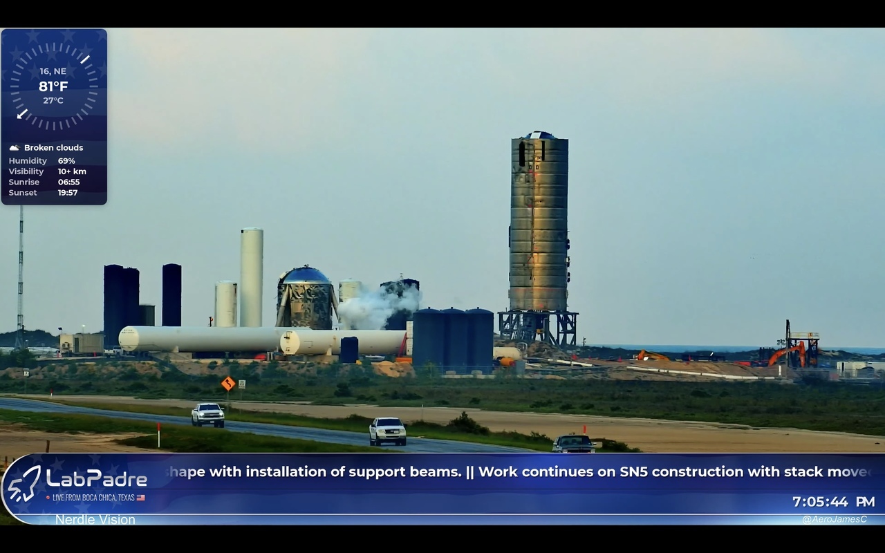Помимо этого, продолжается работа над прототипами SN5 и SN6. Известно что SN5 оснастят тремя двигателями Raptor, а также установят верхнюю носовую конусную часть.