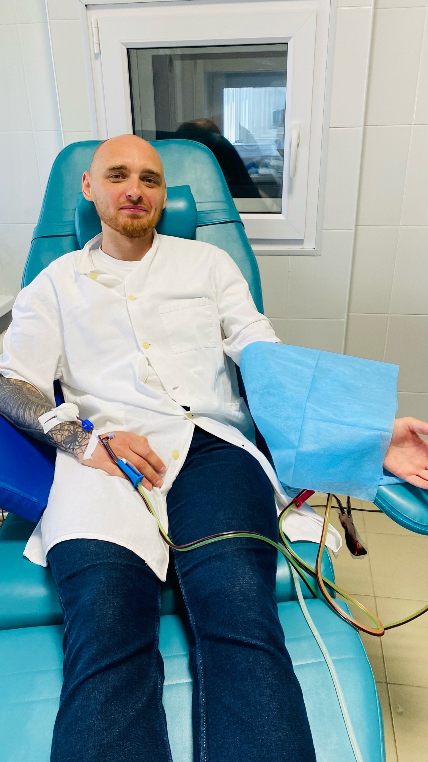 Где-то после четырех часов процедуры у меня начали неметь пальцы на руках, ну и что - подумал я и спокойно сидел себе дальше, затем у меня онемели руки по локоть и начали неметь пальцы на ногах. Я подумал, что это странно. Но не буду же я тут по таким пустякам беспокоить медсестру или врача, в конце концов… Я сидел, тело быстро становилось тяжелым, пытался тихонько разминать руки-ноги, не привлекая внимания. Медсестра заметила мою возню, посмотрев мне на руки, попросила пошевелить пальцами и тут я понял, что не могу ими двигать, впрочем как и говорить, меня буквально впечатало в кресло… Медсестра тут же вызвала доктора, параллельно начав мне в катетер ставить какие-то препараты (как потом оказалось антикоагулянты), врач пришел меня осмотрел, задал риторический вопрос - почему я не сказал ничего о своем самочувствии. После препаратов начало отпускать, я смог говорить, стало тепло) Врач спросил продолжаем ли мы процедуру, я, конечно, согласился. Сказал, что у меня давно уже немели руки, но я не посчитал эту информацию стоящей внимания, меня пожурили. Сказали в любом случае ничего страшного бы не случилось, дискомфорт я создал только себе. Онемение это нормально и об этом надо сразу сообщать, тогда мне подколят препарат и будет ок. В итоге я досидел все 6 часов, врач с медсестрой уже постоянно были рядом. И меня отпустили гулять. Предложили написать письмо реципиенту. Я написал.