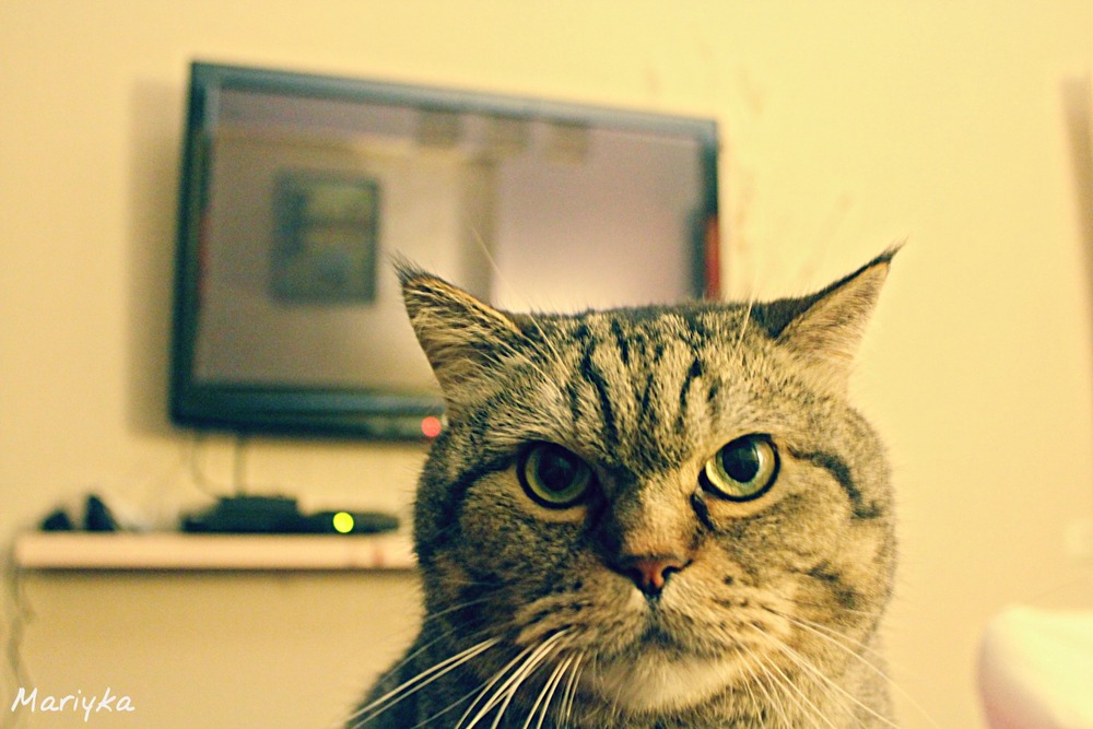 А кот, единственный самец (не кастрирован) в глядели со мной не играет, щурит глаза и валится на спину (не от того что я его бью или что ты там себе надумала, а по той причине что я наверное покрупнее буду, а он не дурак)
