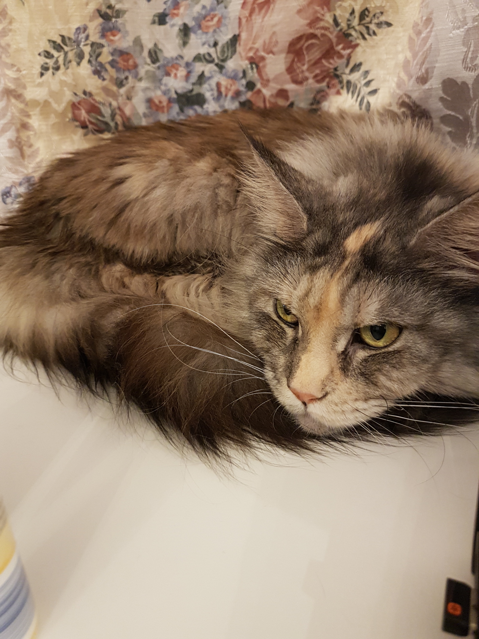 Коты мейн-куны, брат с сестрой, год с небольшим, у нас живут почти полгода.