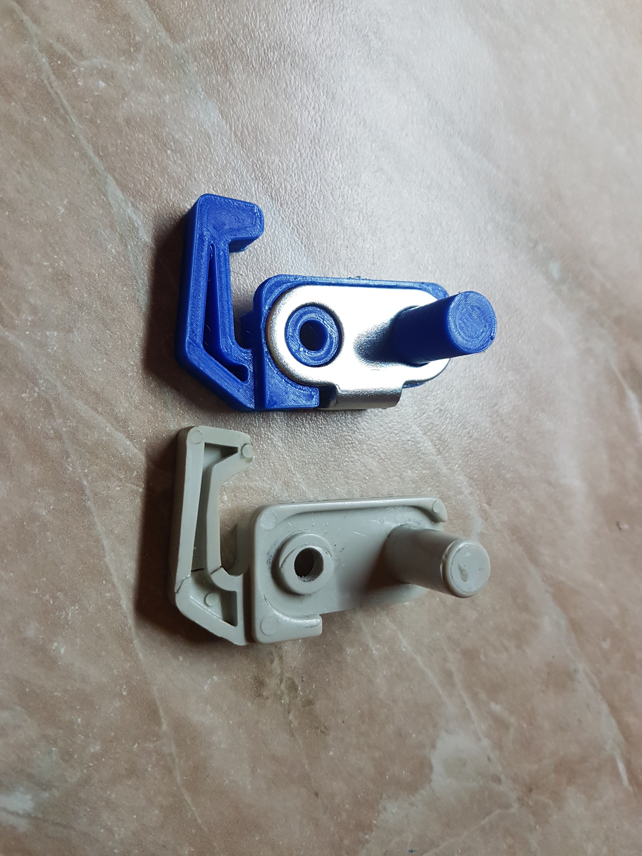 Ну вот, таки у меня сломалась эта штука, пару раз случалось так, что дверь морозильного отделения была приоткрыта и перестала нажимать на кнопку . Что происходит в этом случае? Выключается вентилятор который гоняет воздух по холодильнику. Что произойдёт дальше если вы не заметите этого события и уйдёте на работу к примеру. А произойдёт следующее Испаритель который производит холод обмёрзнет до состояния монолитного куска льда, закупорит воздуховоды которые скрыты от наших глаз и цивилизация пельменей будет обречена на гибель. Даже система само разморозки которая включается раз в сутки не сможет тут помочь, придётся выключать холодильник и ждать полного растапливания образовавшегося льда, а это больше суток!! Я не стал допускать гибели цивилизации пельменей и колонии мороженных грибов. Снял дверцу, отвинтил поломанную деталь, приклеил дверцу обратно при помощи молярного скотча и пошел проектировать сломанную деталь. Была сложнейшая печать на малой скорости и деталь очень была капризной и норовила то деформироваться то оторваться от стола принтера, но я победил в итоге её. И с чувством собственной гордости собрал всё обратно предварительно оторвав поддерживающие элементы от детали и обточив неровности надфилем. И цивилизация пельменей была спасена. Всё работает и уже есть модель запчасти в архиве.