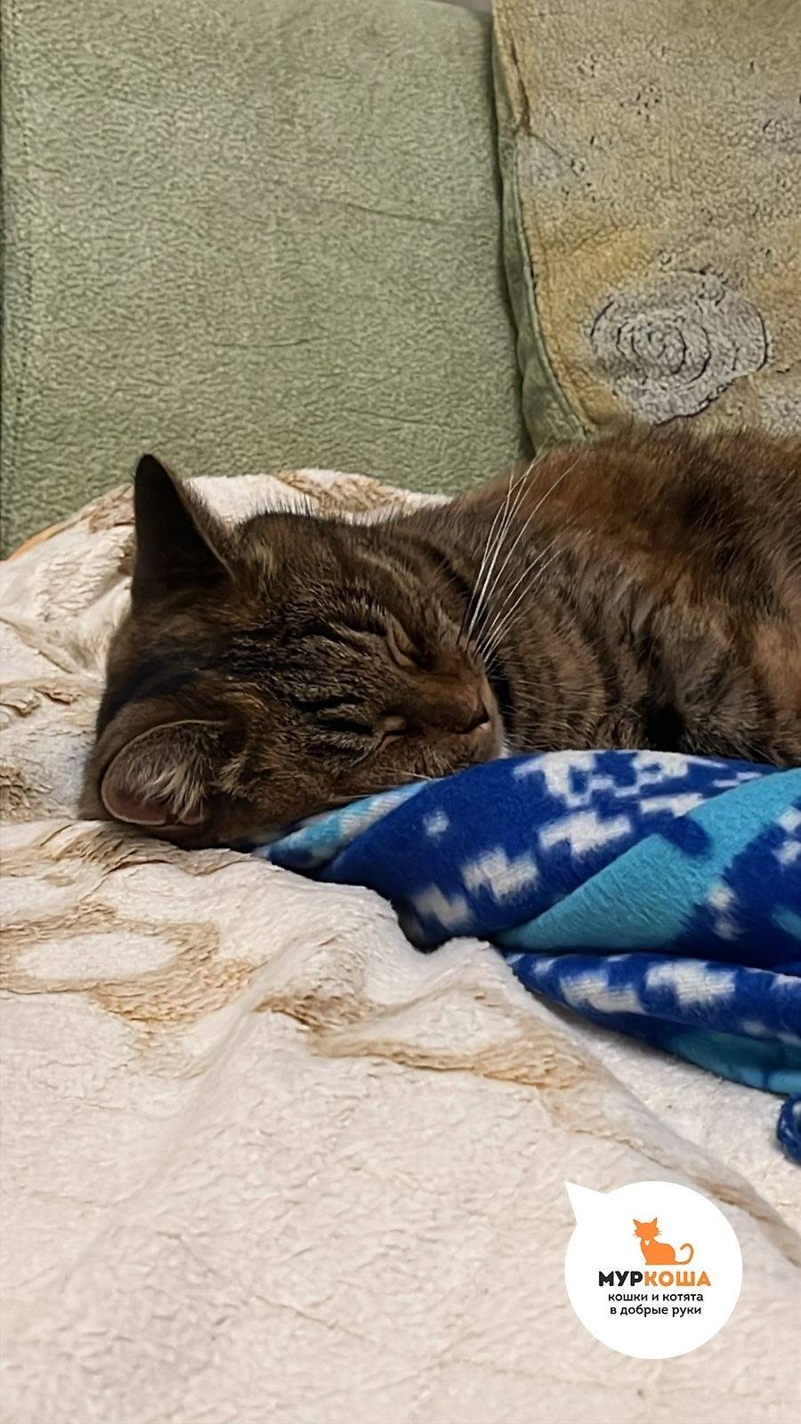 К счастью, ей повезло – неравнодушный человек заметил неприкаянное кошачье семейство и вывез с дач всех троих. Так Сарафина оказалась в «Муркоше», в тепле и сытости. Но сперва нужно было пройти лечение, ведь долгие скитания не прошли бесследно: у кошечки обнаружился холецистит. Сарафина стойко прошла все процедуры, и наконец лечение осталось в прошлом! Она была готова к новому этапу своего жизненного пути!