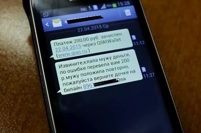 Недавно пополняла баланс телефона с карты. Кидала сразу на несколько номеров, из-за этого ошиблась в одном цифрой. Пришлось еще раз перезакинуть денег, уже на правильный номер. Абонент, которому по ошибке кинула денежку, на смс с просьбой вернуть отреагировал молчанием)) Ну что, сама тупанула. Потом, думаю, через оператора верну.