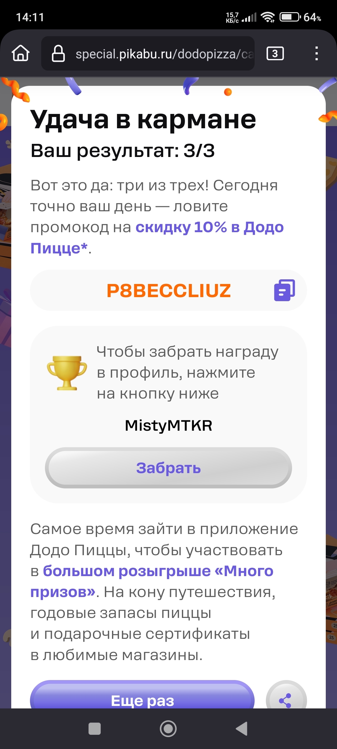 Приняла участие в игре на день рождения Пикабу, которую они с Додо пиццей сделали. Получила промик, думаю, как поем пиццы (в целом, люблю пиццу у Додо). В промике было написано - скидка 10% и звёздочка. Но кто читает звёздочку?)