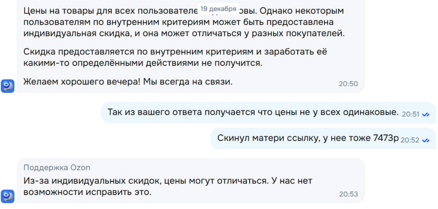 12 Tingler Сервис "Спасибо" OZON! 1 месяц назад Пасиб ^_^ О, у нас такой хороший ̶л̶о̶х̶ покупатель! Держи ка хорошие цены! Моя цена Не моя цена А это цена матери, жены, и 2-х братьев. А так же ответ поддержки прекрасен Неси бабло и дальше, раз ты такой молодец. [моё] OZON Продавцы и покупатели Цены Маркетплейс Длиннопост 4 2 Ещё 0