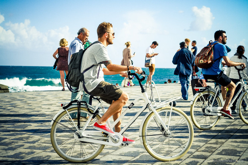Опять же: при росте в два метра это сделать вообще нетрудно. Если я, карлан, в джинсах пытаюсь перекинуть ногу, то это превращается в какой-то акробатическое представление по растяжке. Это дичайше неудобный тип рамы для городского велосипеда, где часто слазишь/залазишь на велосипед.