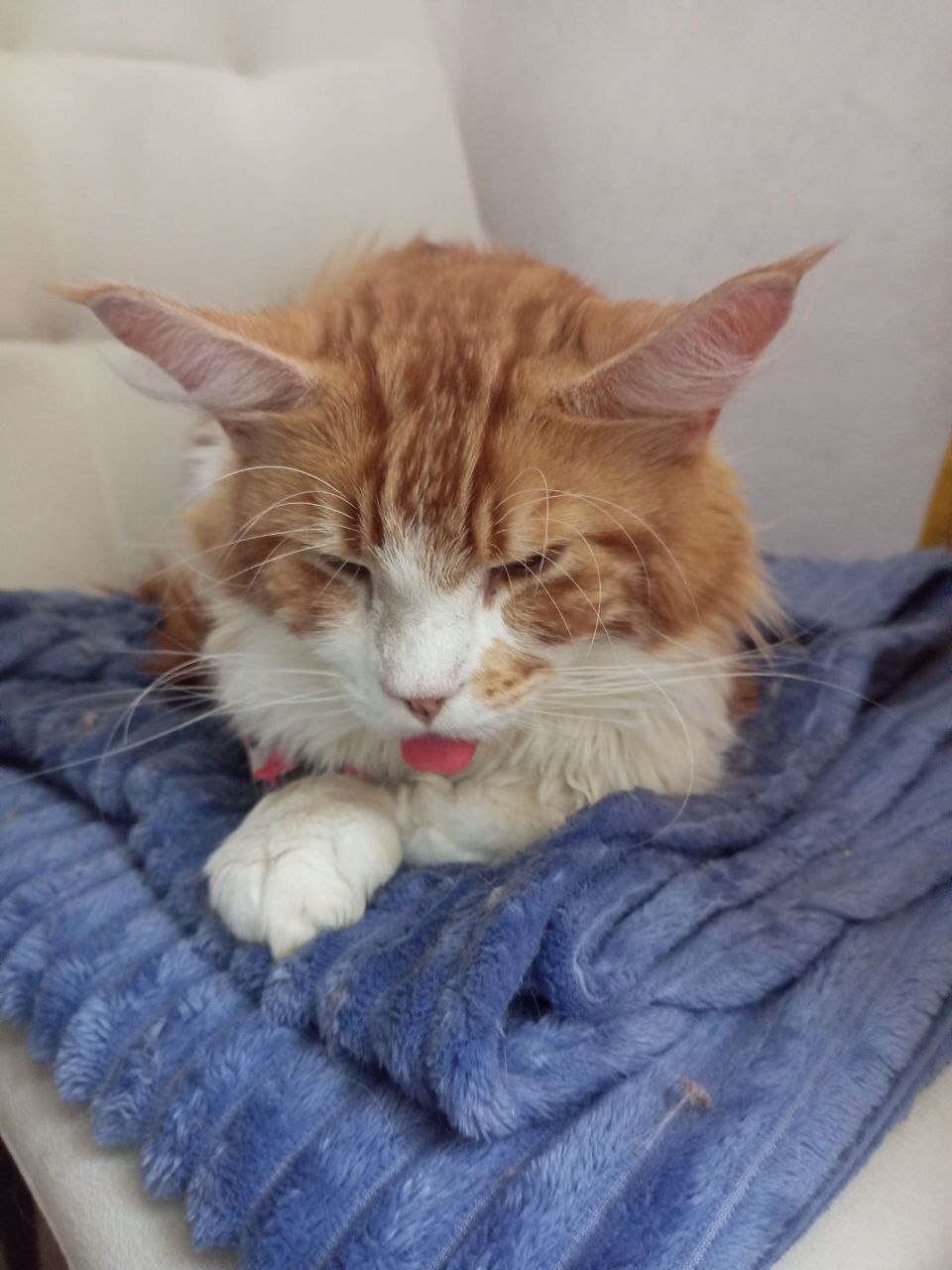 Кот часто высовывает язык. Не можем понять почему, обезвоживание почти убрали, отека не наблюдаем. Возможно, зубы.