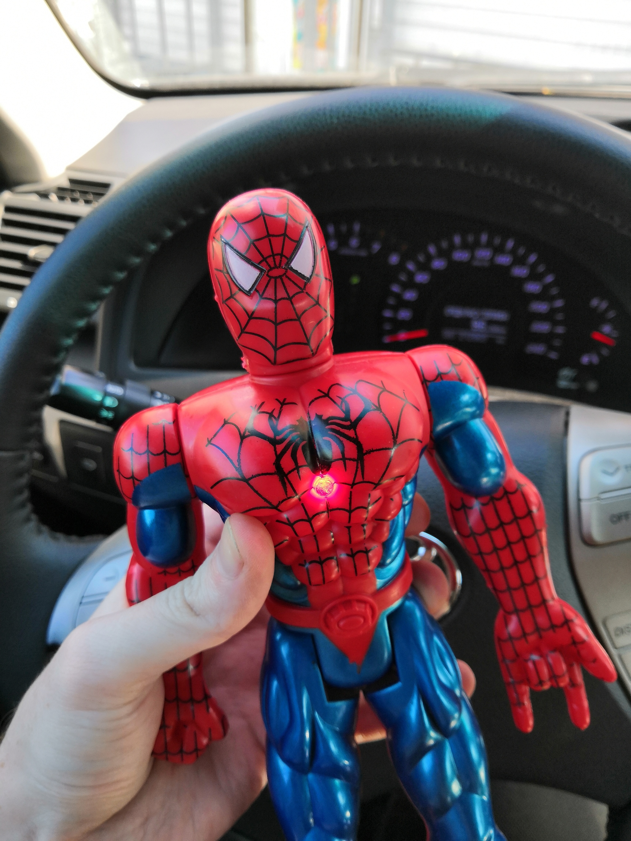 Взяли мелкому спайдермена и батарейки к нему, продавщица настоятельно предупредила, что нужны именно 2 батарейки АА и жизнь супергероя заиграет красками. Ну что ж, надо, так надо.