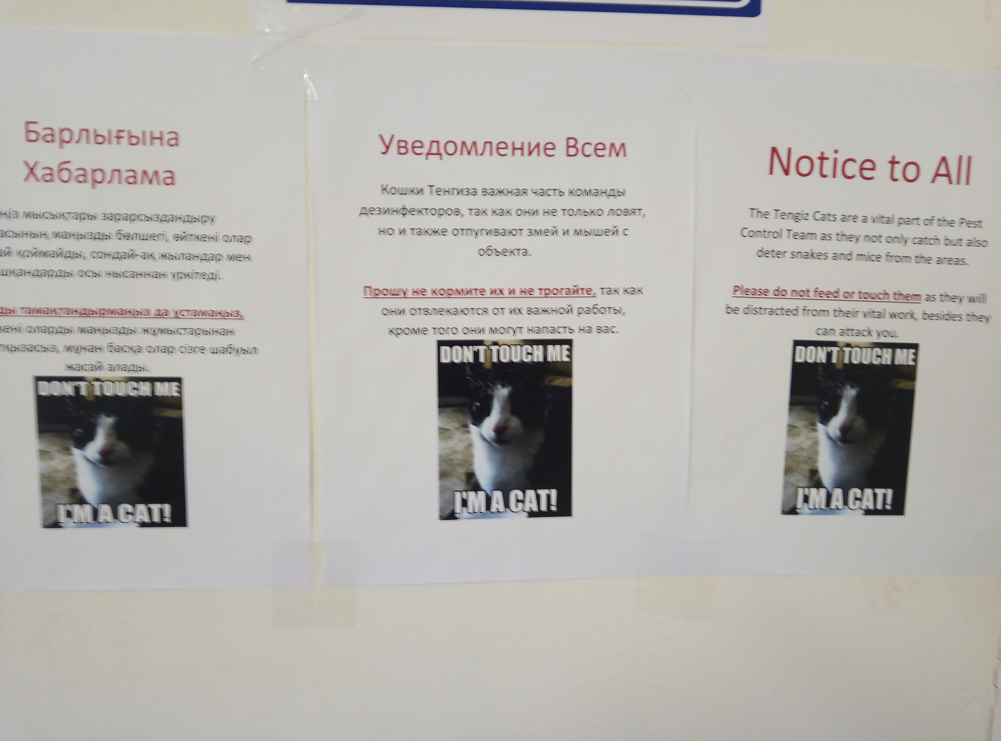 4 DELETED СпецКоты 6 лет назад Вот такие у нас сотрудники на Тенгизе есть. Живут под нашей пекарней, в нашем лагере. У всех мини ошейники с мини-номерками. За качество фото прошу извинить, так как телефон не очень. [моё] Кот Фото на тапок Тенгиз