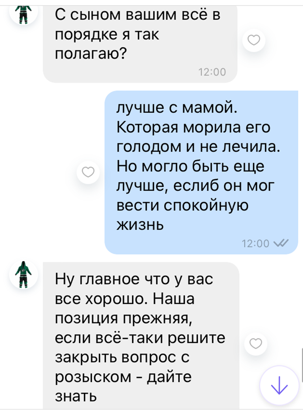 Белым ее сообщения, зеленым мои.