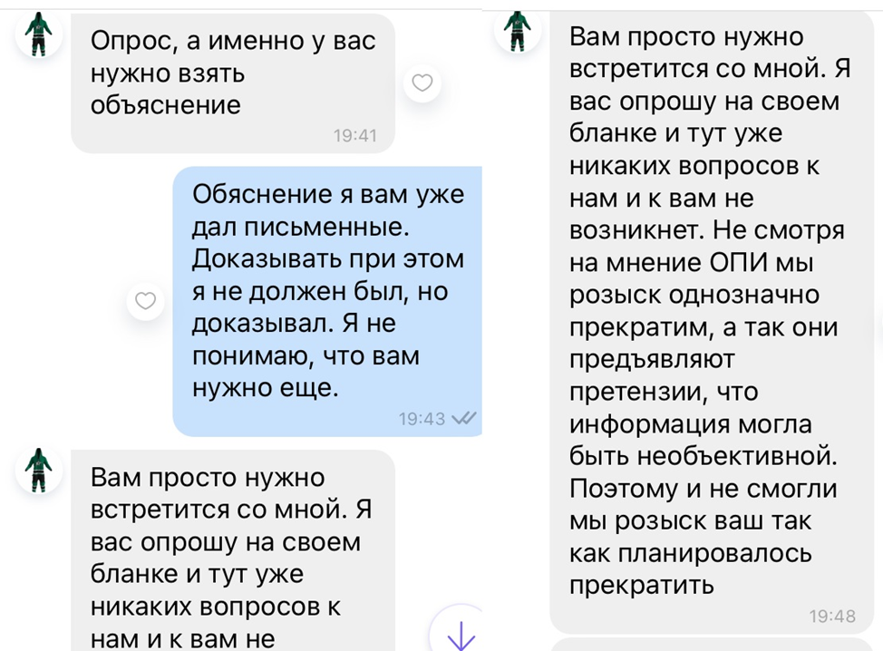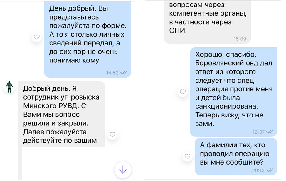 Скрины переписки с милиционером
