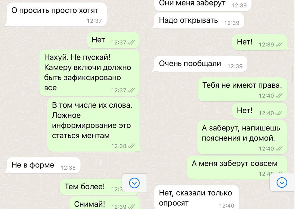 Два полицая, не в форме, остановили мою подругу. С ее слов толкали ее к выходу, обещали задержать. Если дверь откроем, то обещали только опросить меня и сфотографировать моего сына. Совершая эти преступления клялись честью офицера.